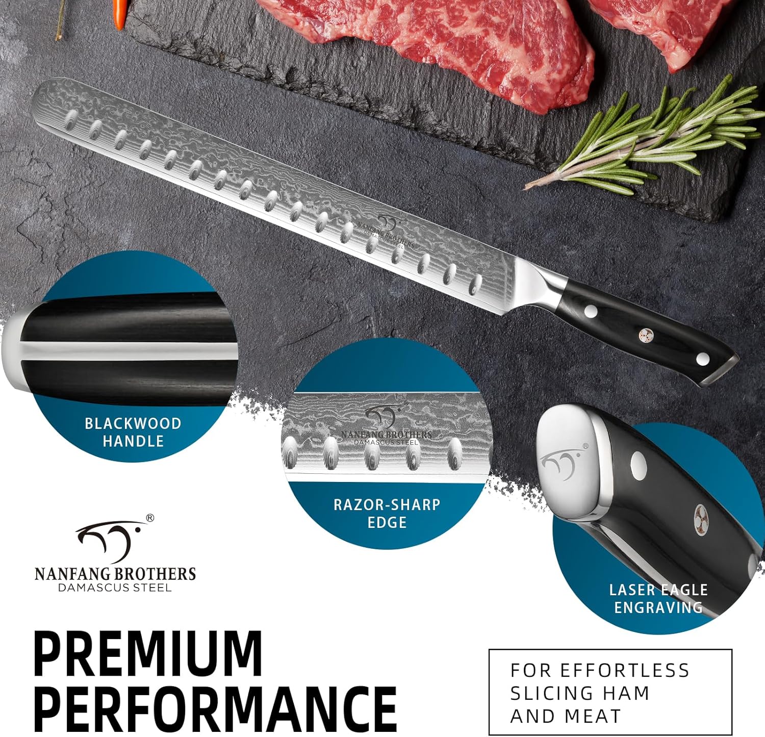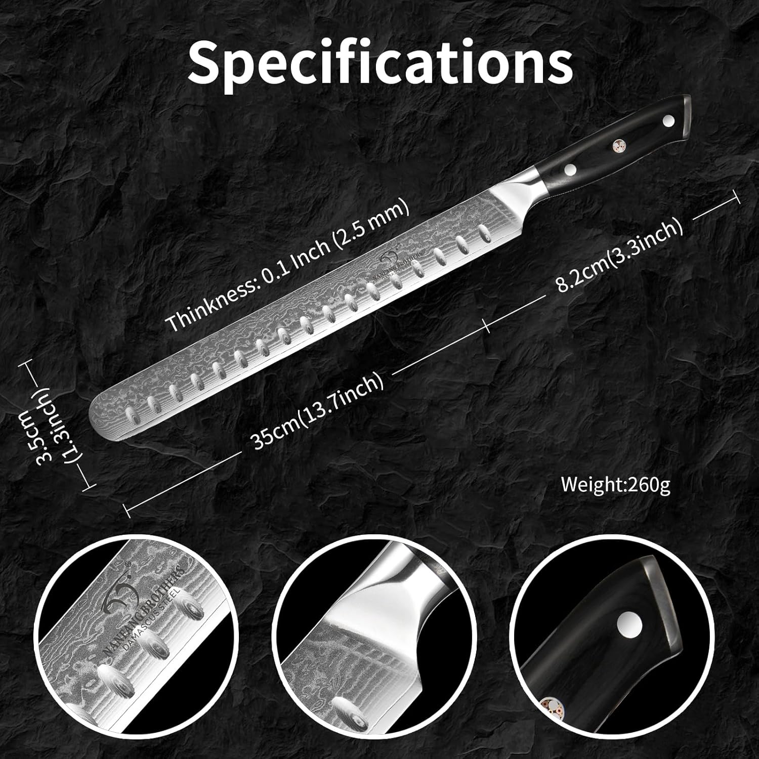 PROFESSIONAL KITCHEN KNIFE – Crafted from 67 layers of Damascus steel, this carving slicing knife features a precision-tapered, razor-sharp edge designed to make slicing brisket, turkey, roast, ribs, prosciutto, and other meats a breeze. Enjoy unparalleled performance and effortless carving with every cut.