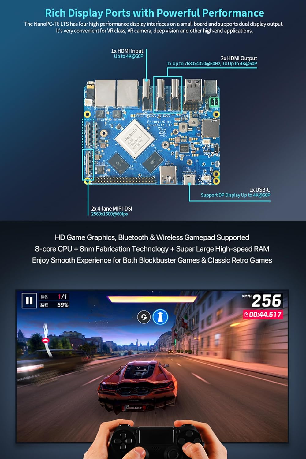 NanoPC-T6 Mini Router Support 8K Video Encoders and Bluetooth Wireless Gamepad