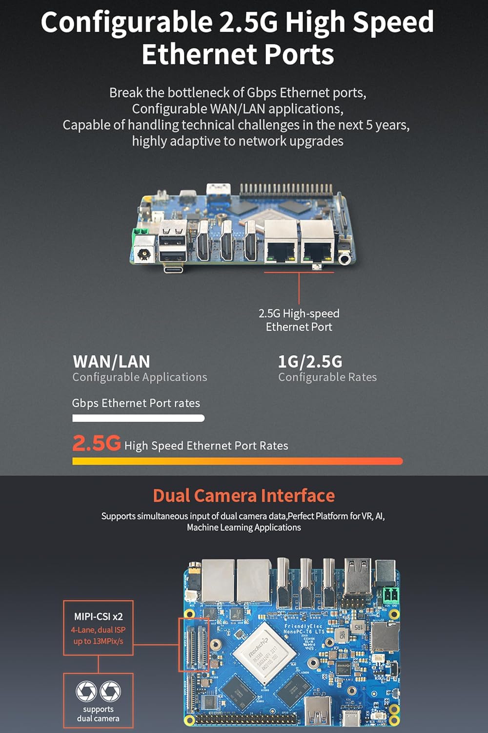 NanoPC-T6 Computer WiFi Router support High Speed PCIe 2.5G Gbps Ethernet