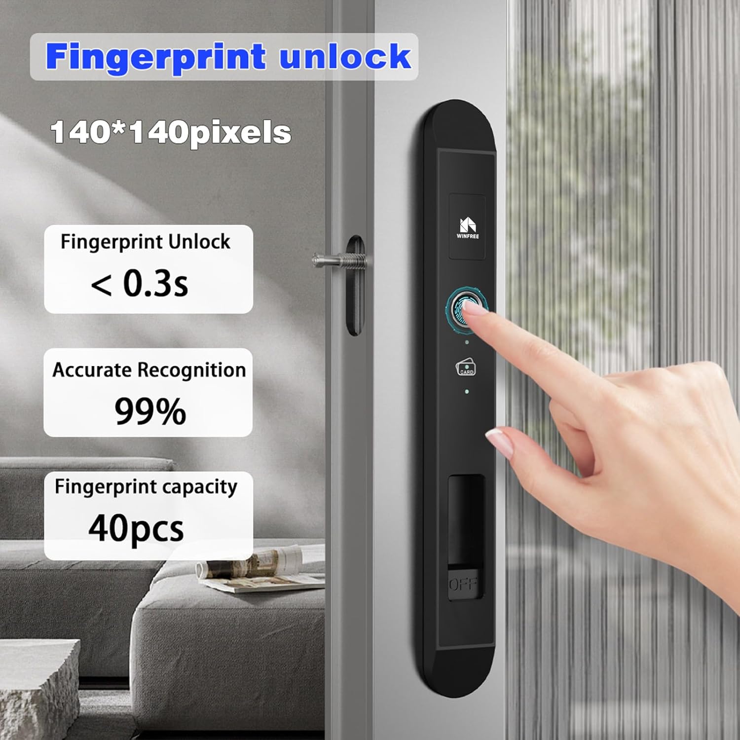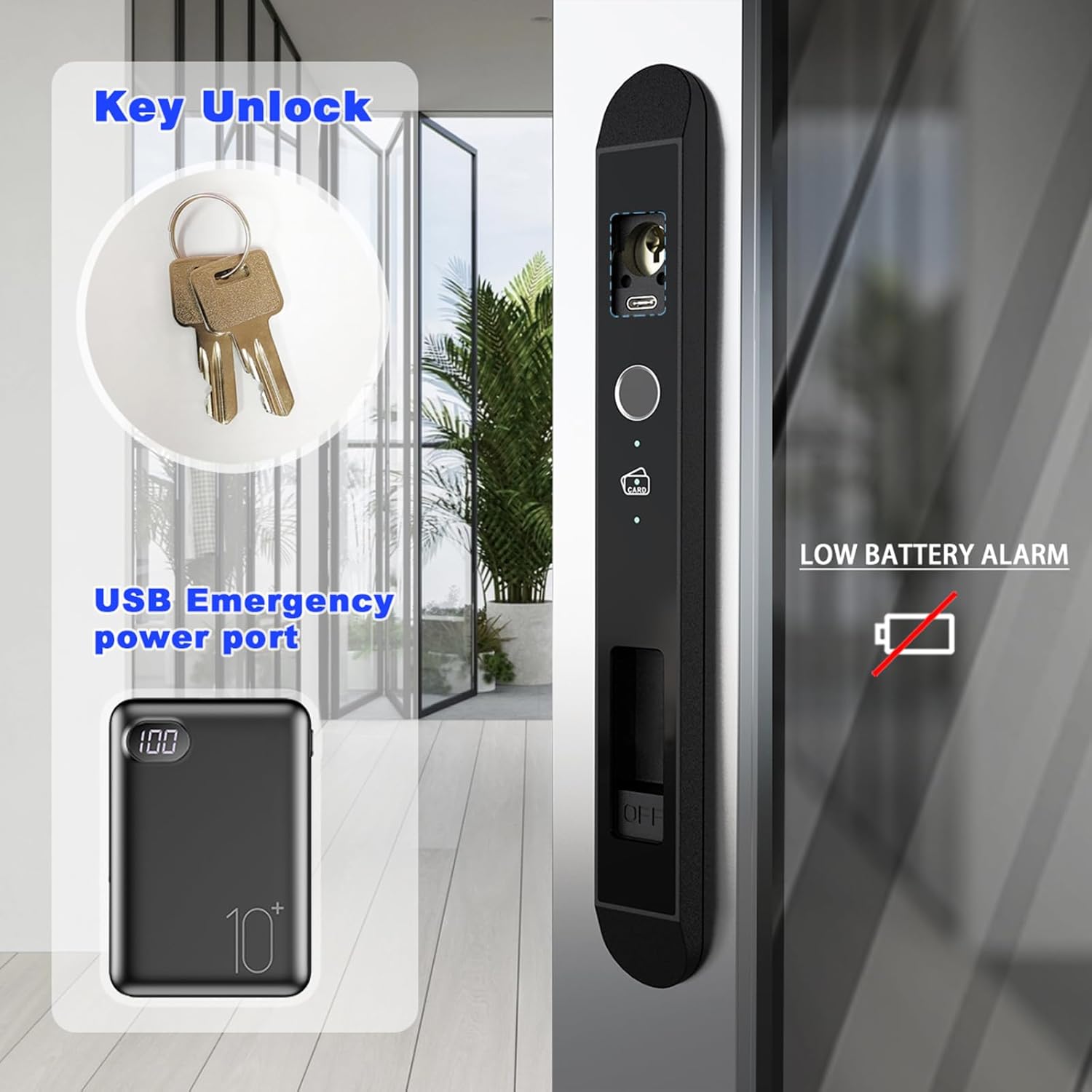 Narrow Smart Door Lock, Keyless Entry Sliding Door Lock, 4in1 Multipul Unlock Method, Fingerprint, Card, Mechanical Key, App Remote Control, Use Tuya APP, Rechargeable, Slider (Slider, Black)