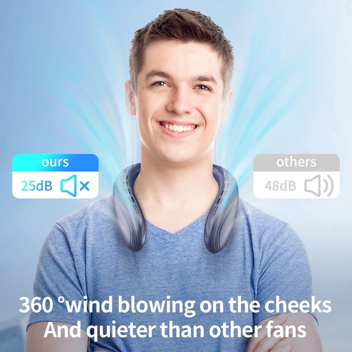 Fashionable&Comfortable: Perfect for queuing at Disneyland, camping, or playing golf, this fan features dual flexible silicone pads for a secure fit. Its sleek curves and smooth lines ensure a lightweight feel for long-term use. and Enjoy 360° airflow with a stylish and comfortable design, keeping you cool and fashionable in any setting.