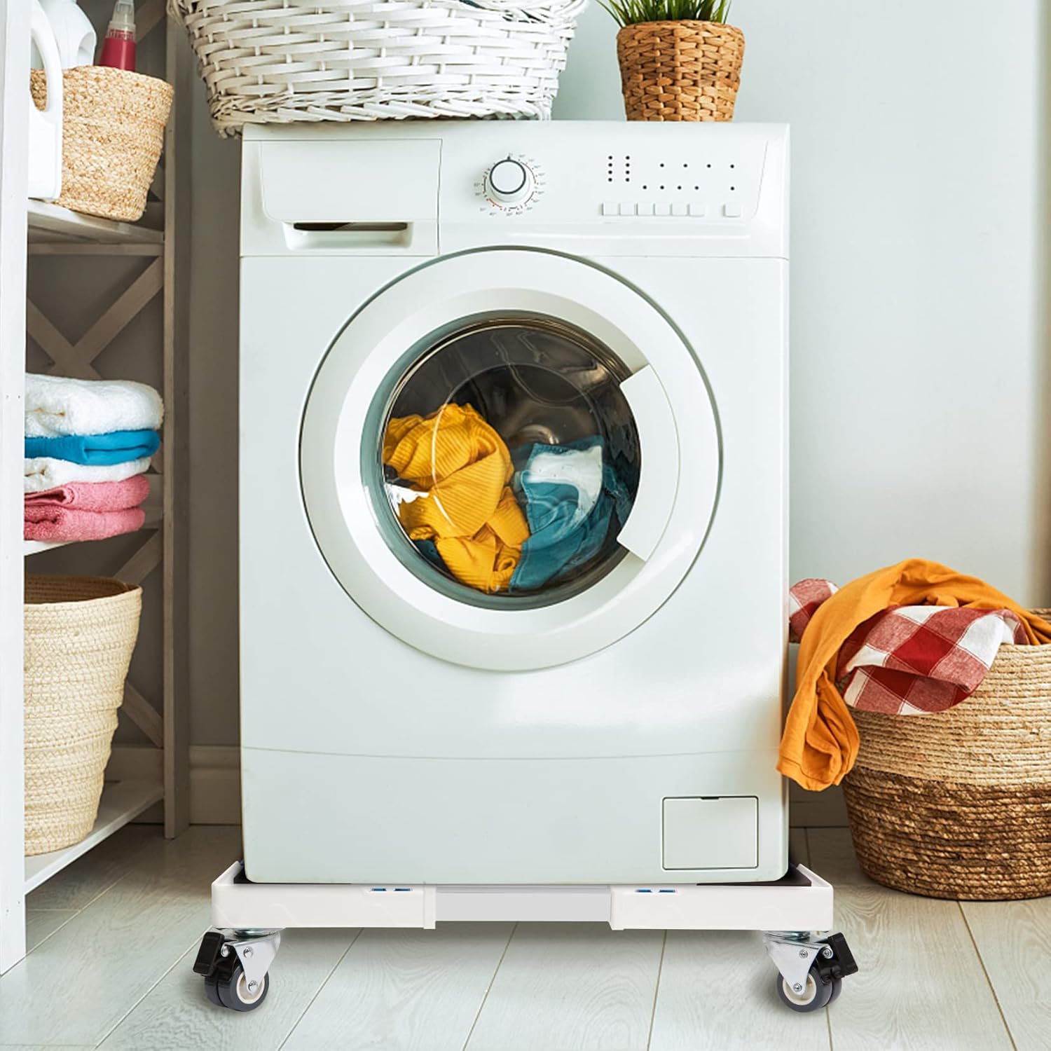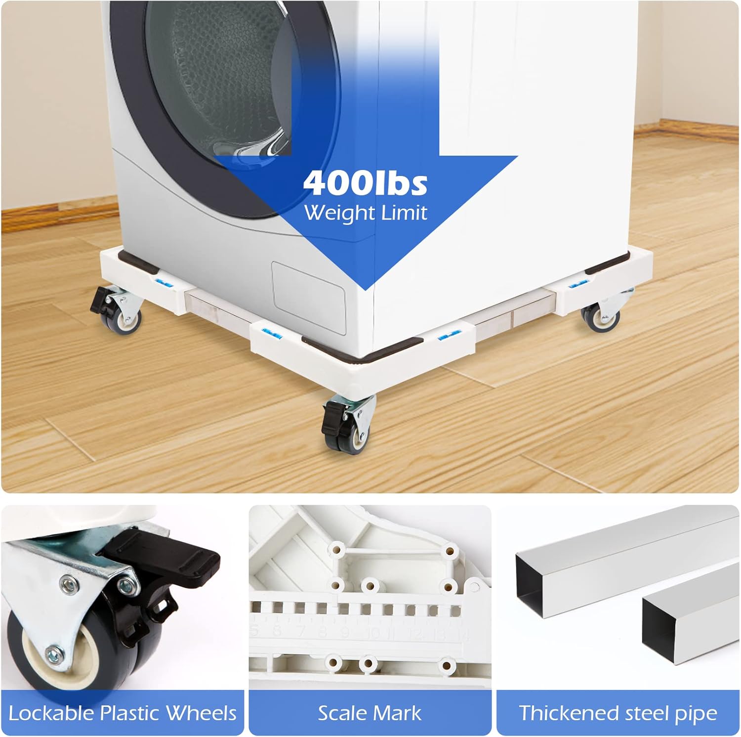 Heavier Load Capacity: Compared with other moving rollers, Nefish washing machine pedestal dolly comes with 4 thicken square stainless steel poles. This movable dolly can support appliances or furnitures up to 400 lbs, make it a wide applications, such as washing machine stand, dryer moving cart, refrigerator base, etc.