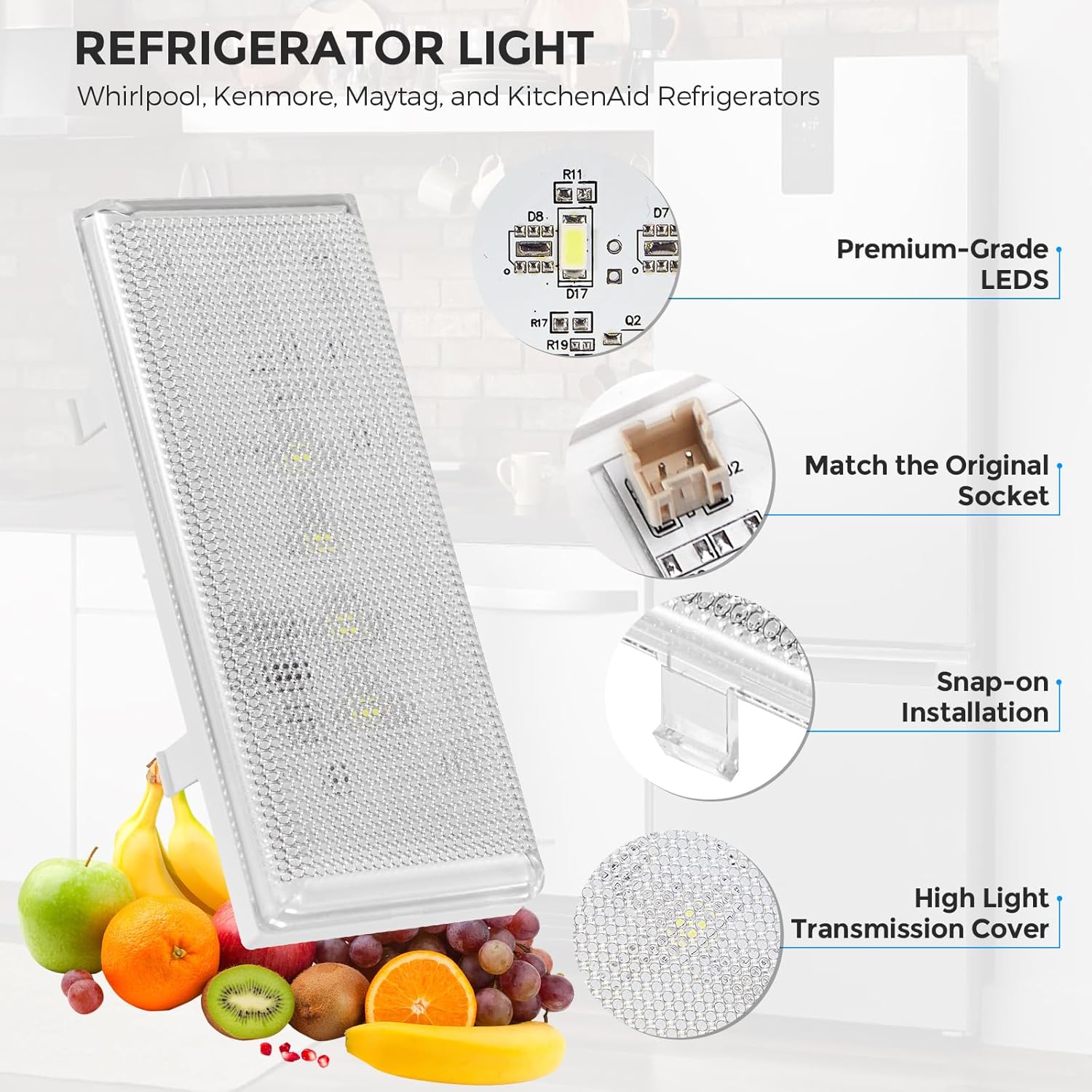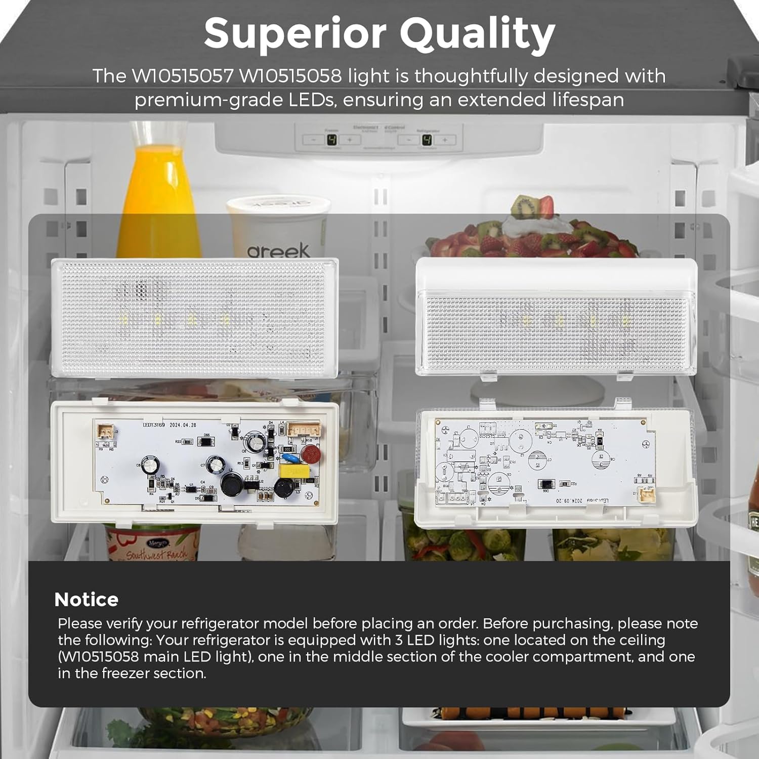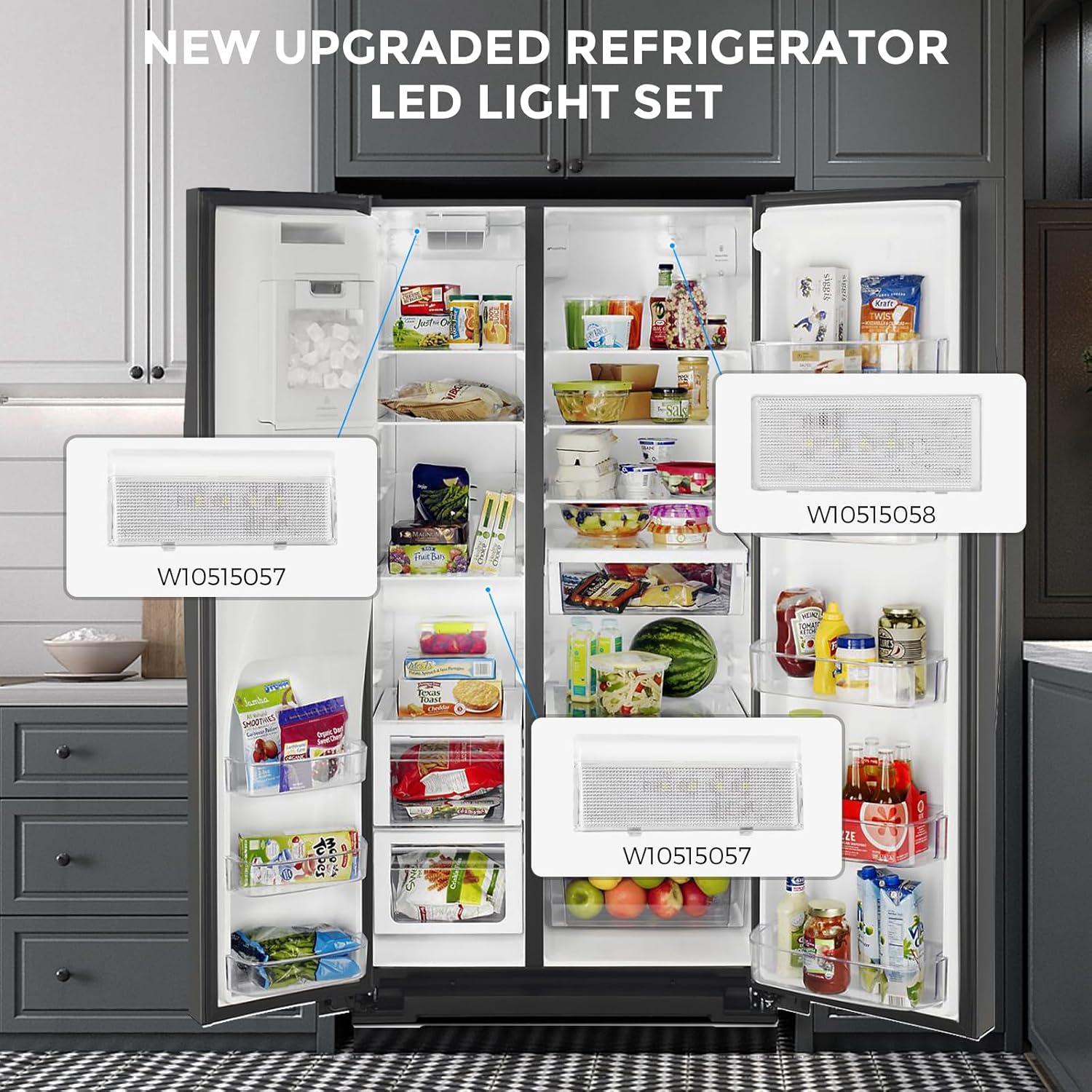 【LED Lights】- One W10515058 is the main LED light located on the ceiling. Compatible with Whirlpool, Kenmore, Maytag, and KitchenAid Refrigerators.