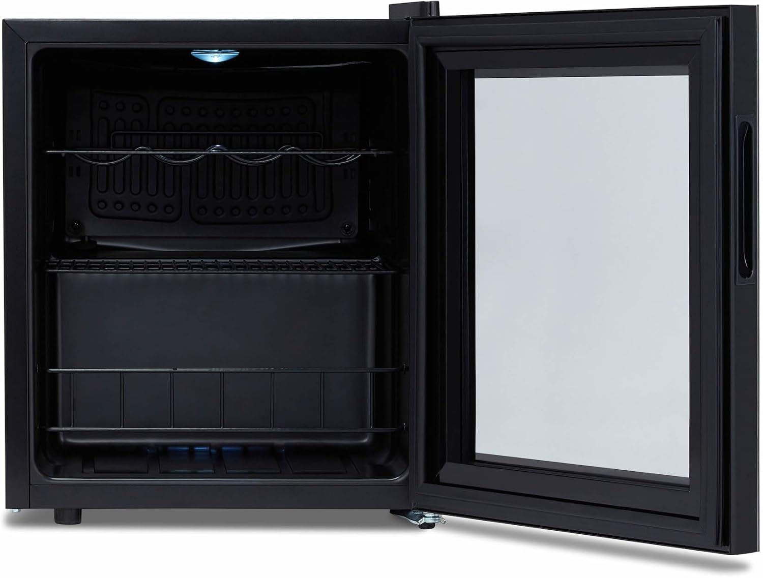 [VERSATILE ADJUSTABLE SHELVES] – This wine chiller comes with sleek black wine racks that can be easily removed, making it easy to load bottles, giving you convenient access to your collection.
