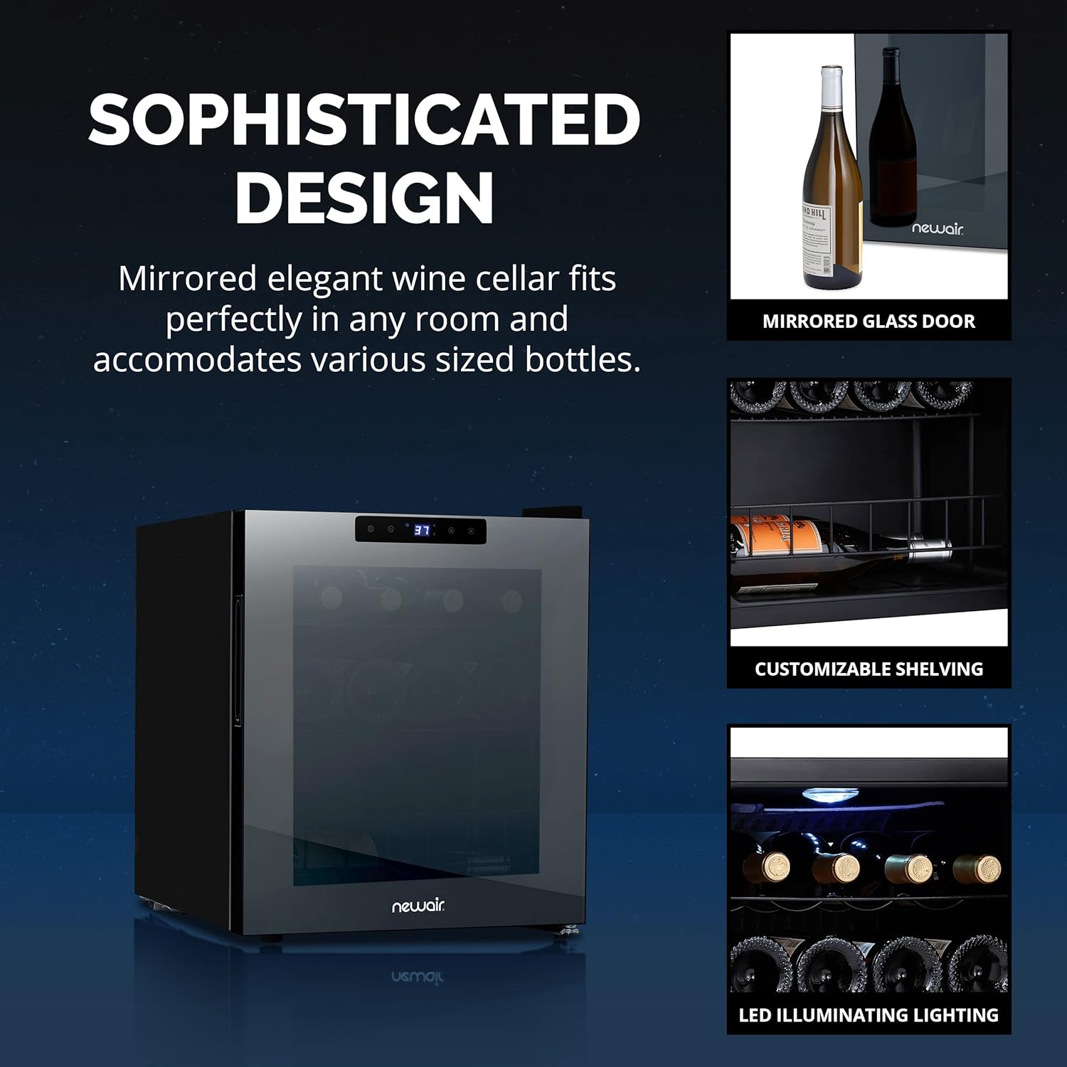 After a long day, there’s nothing better than the company of good friends, good food, and a great glass of wine. The Newair Shadow Series Wine Refrigerator lets you enjoy the finer things in life-and looks great doing it. The sleek, updated design features a mirrored door that blends perfectly into your décor while resisting smudges and fingerprints. The double pane glass blocks harmful UV rays to protect your wine’s flavor and aroma. The durable control panel is built right into the glass, allowing you to select the perfect temperature with ease. It’s never been easier-or more stylish-to serve up your favorite vintage.