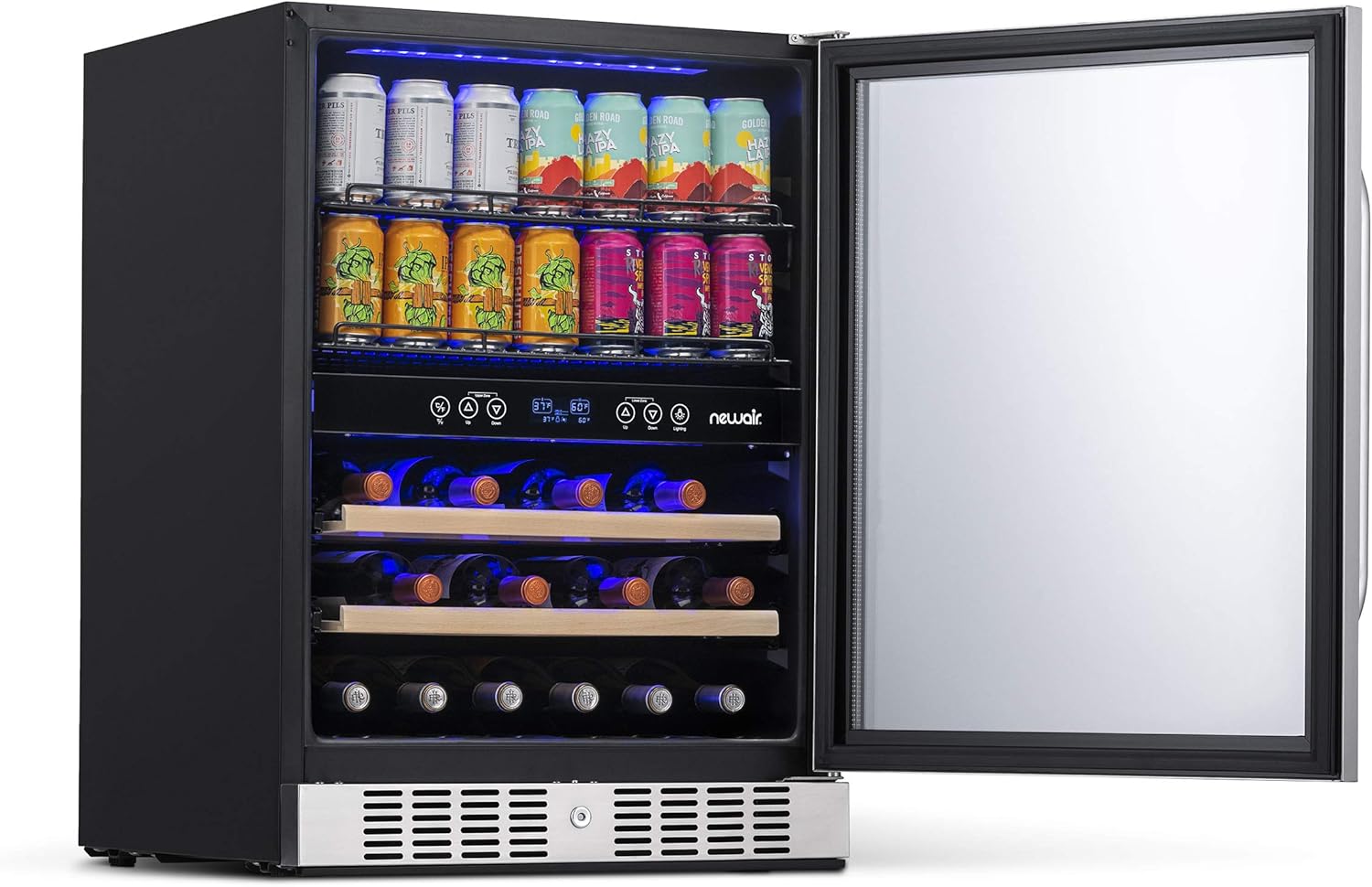 Get ready to party with the Newair AWB-400DB Dual Zone Wine and Beverage Cooler. This handy wine and beverage fridge has two cooling zones so you can keep both wine and beer at the perfect temperature for serving. Easy-slide wine racks and the innovative SplitShelfconfiguration help maximize storage space so your well never runs dry while you’re entertaining.