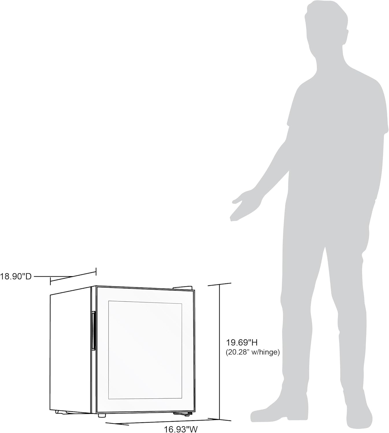 At just 16.93 inches wide and 20.28 inches high, this little fridge does a lot. With the capacity to hold up to 60 standard cans, you can fit all the drinks you want inside – without having to redesign your room to fit a larger appliance. The removable shelf lets you make space for taller bottles or large packages as needed, while the lightweight design can easily be moved from the kitchen to the garage, dorm, and back again.