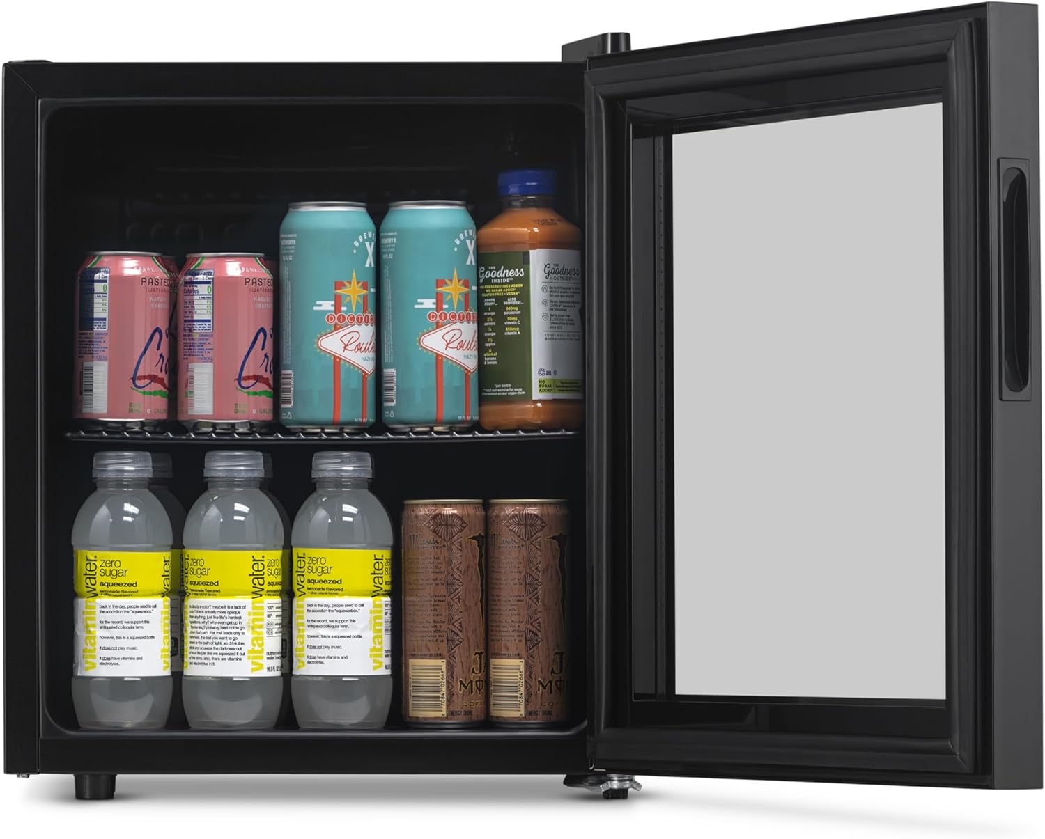 [PERFECT FOR ANY PURPOSE] – Holds everything from soda, beer, wine and more so you can stay stocked for any occasion. Features a reversible glass door and classic black finish so you can view your contents from a glance.
