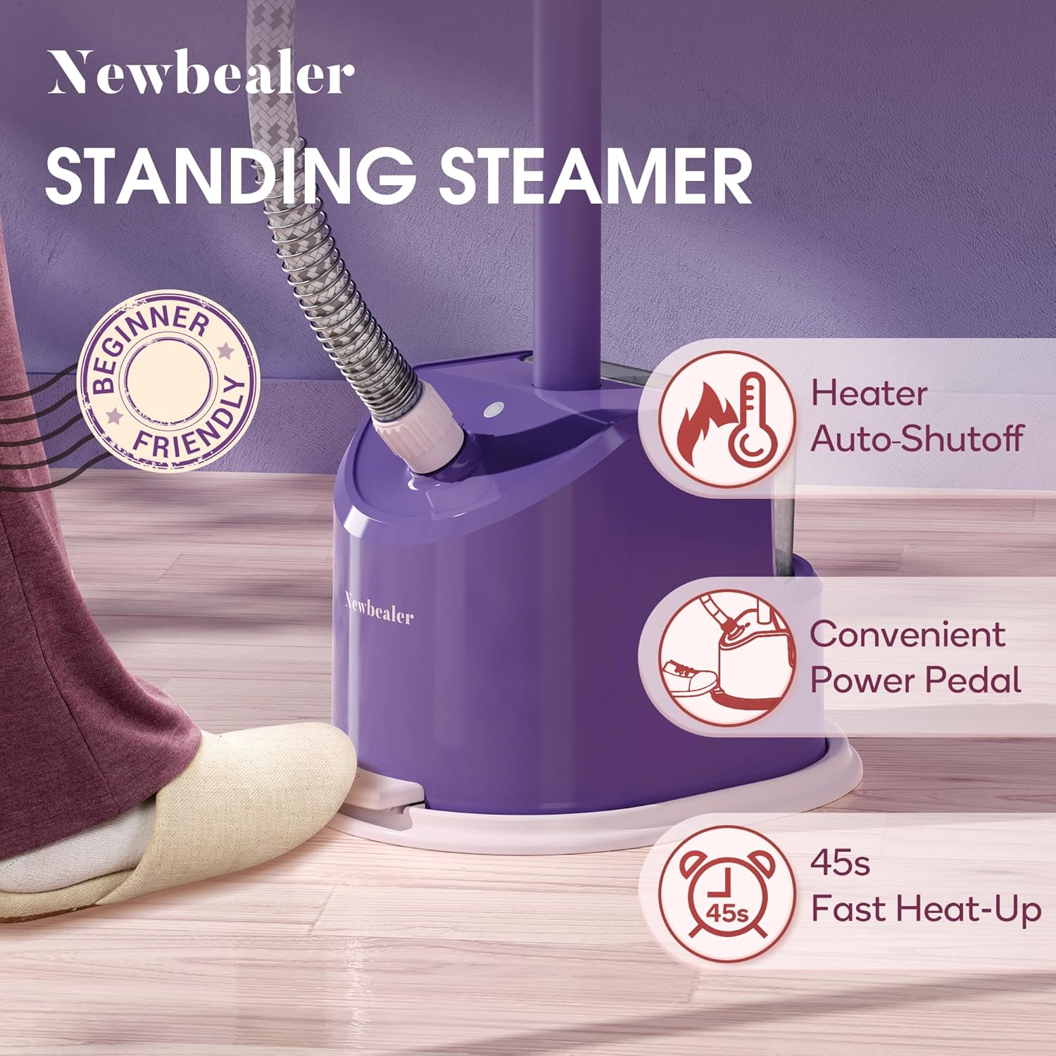 Beginner-Friendly Wrinkle Solution: This standing steamer, perfect for first-time users, heats up in just 45 seconds and boasts a robust 30g/min steam output with 1500W power, ensuring faster and more efficient results than traditional irons. Its user-friendly design and features provide a seamless experience, even for novices. Ideal for a variety of household fabrics.