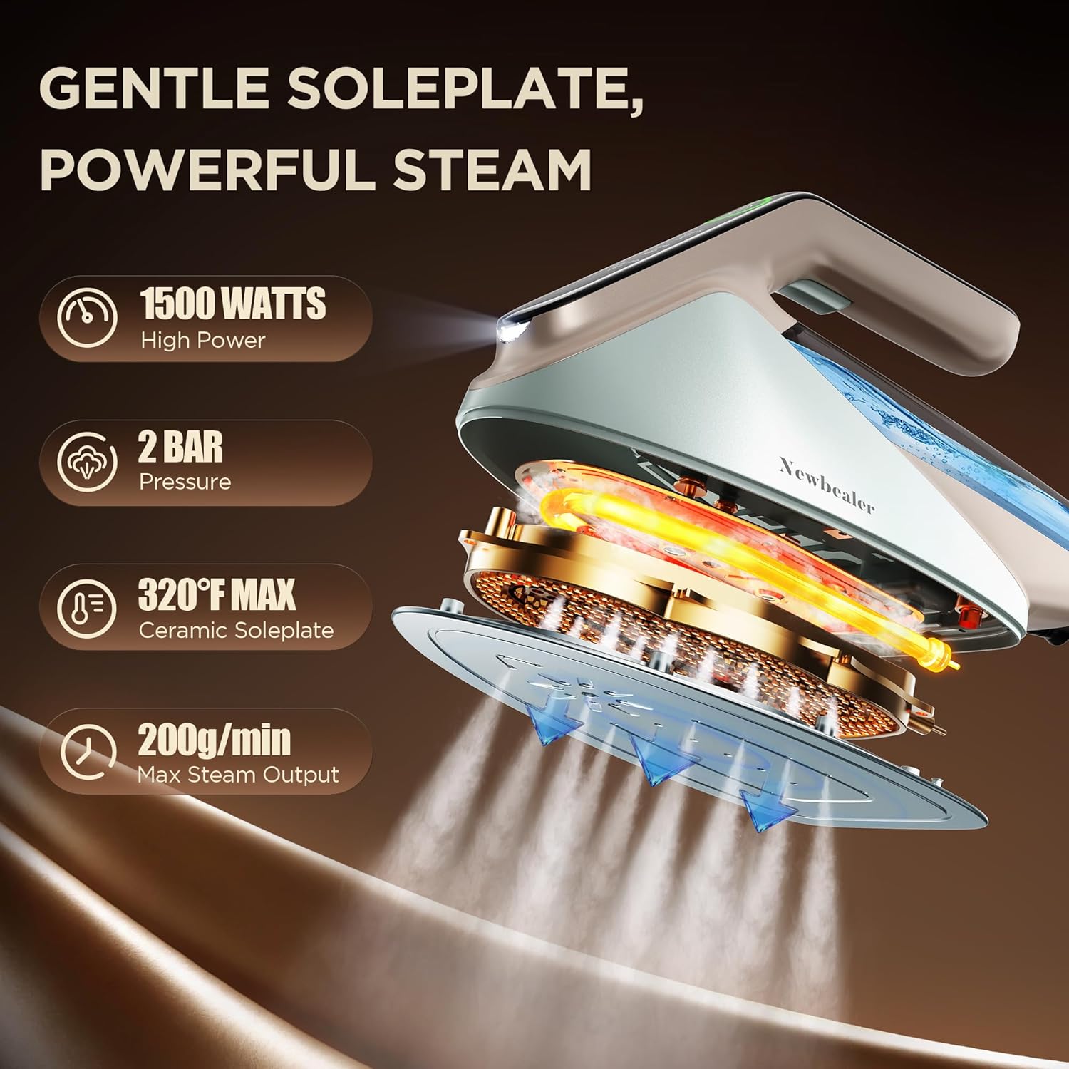 Newbealer steamer high power steam pressure low-temp soleplate preset iron modes wrinkle removalNewbealer steamer high power steam pressure low-temp soleplate preset iron modes wrinkle removal