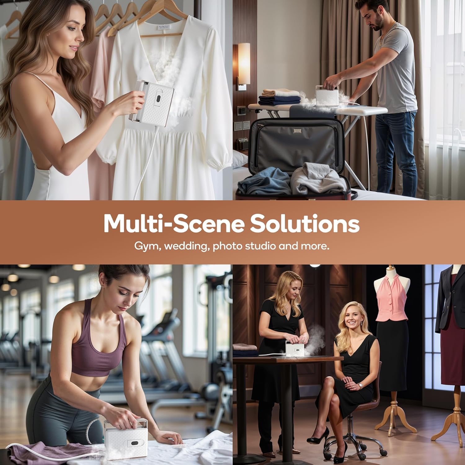 [2-in-1 Garment Steamer] This handheld steamer packs 900W max powerand features a 120ml water tank. It blasts 275℉ steam for fast, effective crease removal, with continuous use up to 8 minutes. It also doubles as a dry iron, perfect for on-the-go ironing needs.