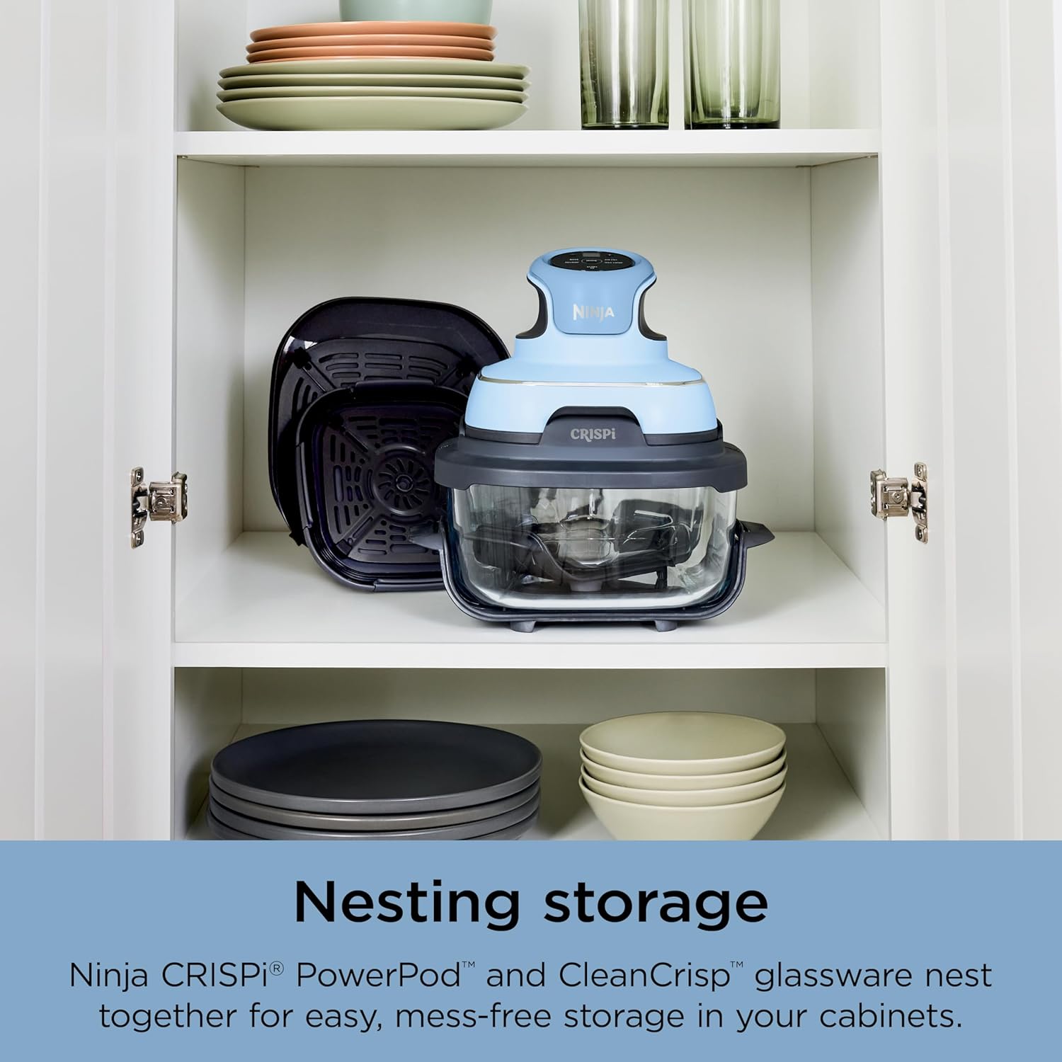 Ninja Crispi 4-in-1 Portable Glass Air Fryer Cooking System, 4QT & 6Cup Glass Containers with Storage Lids, Easy Meals, Microwave, Freezer & Dishwasher Safe, Air Fry, Bake, & More, Periwinkle, FN101PL
