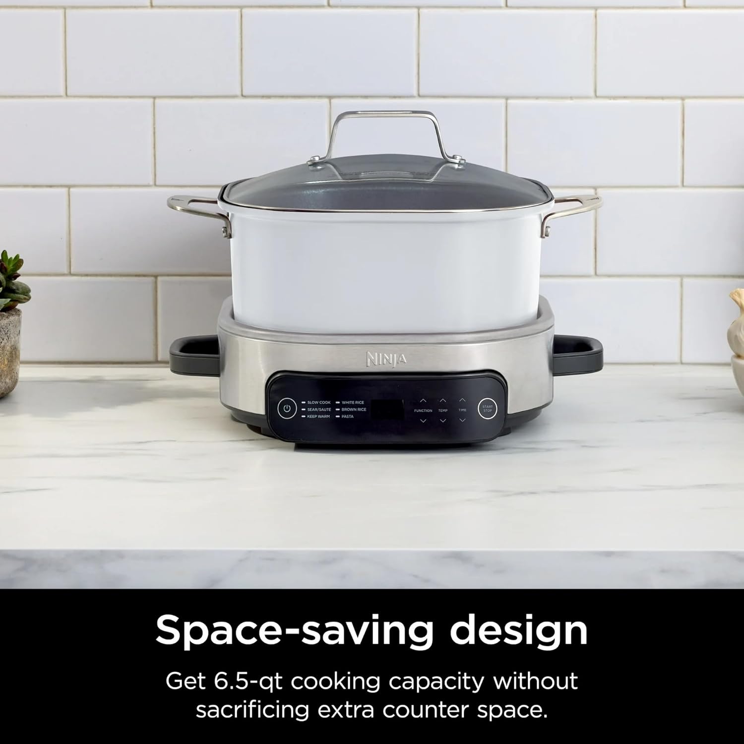8-IN-1 VERSATILITY FOR EFFORTLESS COOKING: Enjoy functions like slow cook, sear/sauté, braise, keep warm, white rice, brown rice, oats, and pasta in one appliance, replacing multiple kitchen tools for streamlined meal prep and reducing countertop clutter while delivering professional results.
