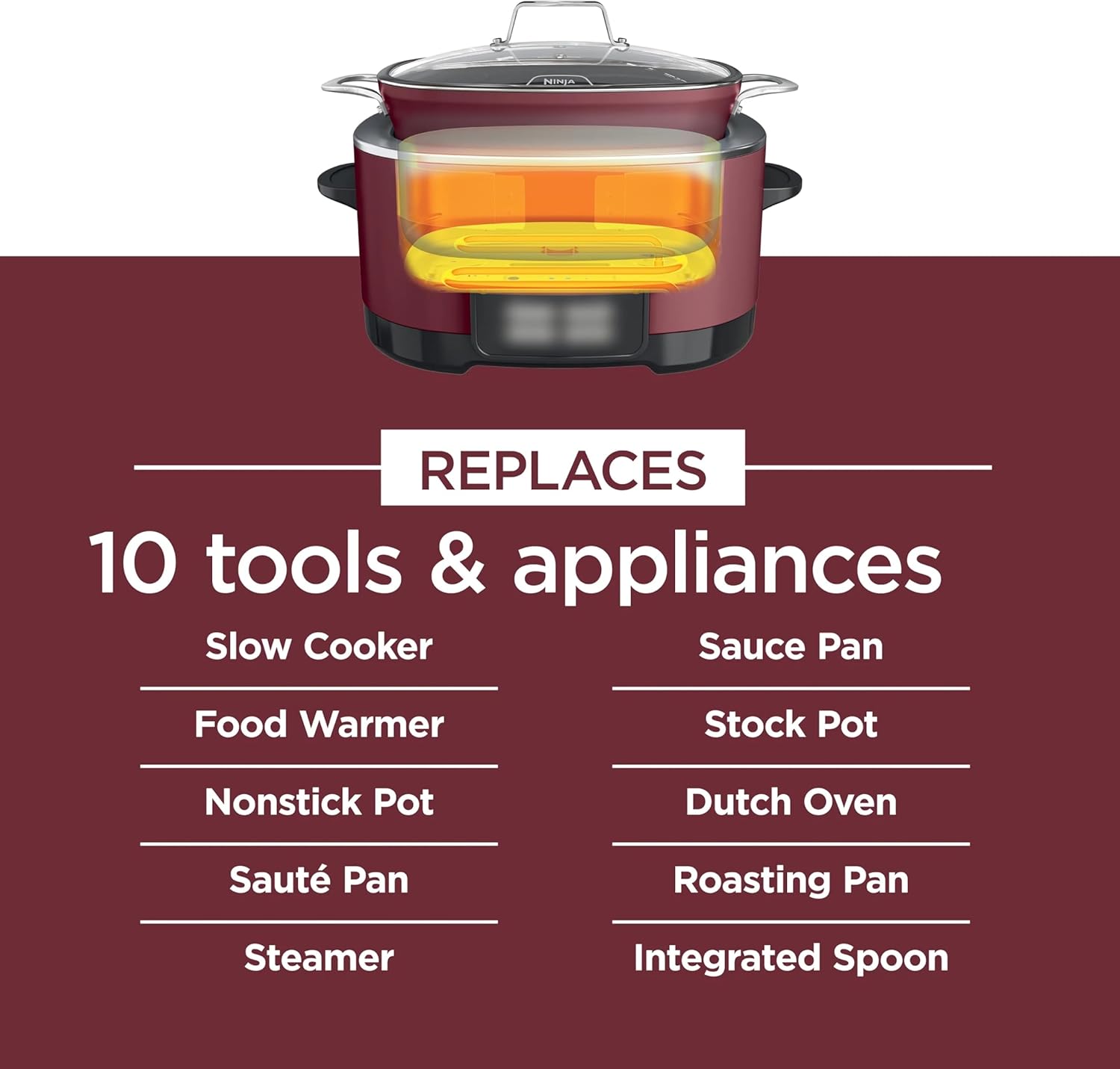 REPLACES 10 KITCHEN APPLIANCES: This all-in-one cooker replaces your slow cooker, food warmer, nonstick pot, saute pan, steamer, stock pot, Dutch oven, and utensil, saving you space and simplifying your cooking routine