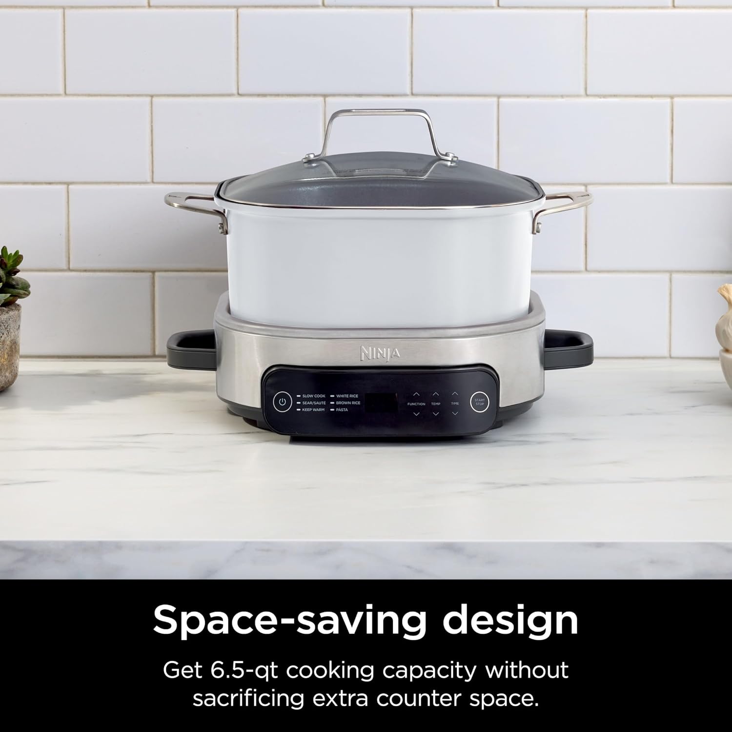 Ninja Foodi PossibleCooker PRO 6.5Qt Multicooker 8 in 1 Slow Cooker, Dutch Oven, Steam Bake Roast Sear Sauté Bread Maker Warmer, Glass Lid, Integrated Spoon, Nonstick (WHITE)