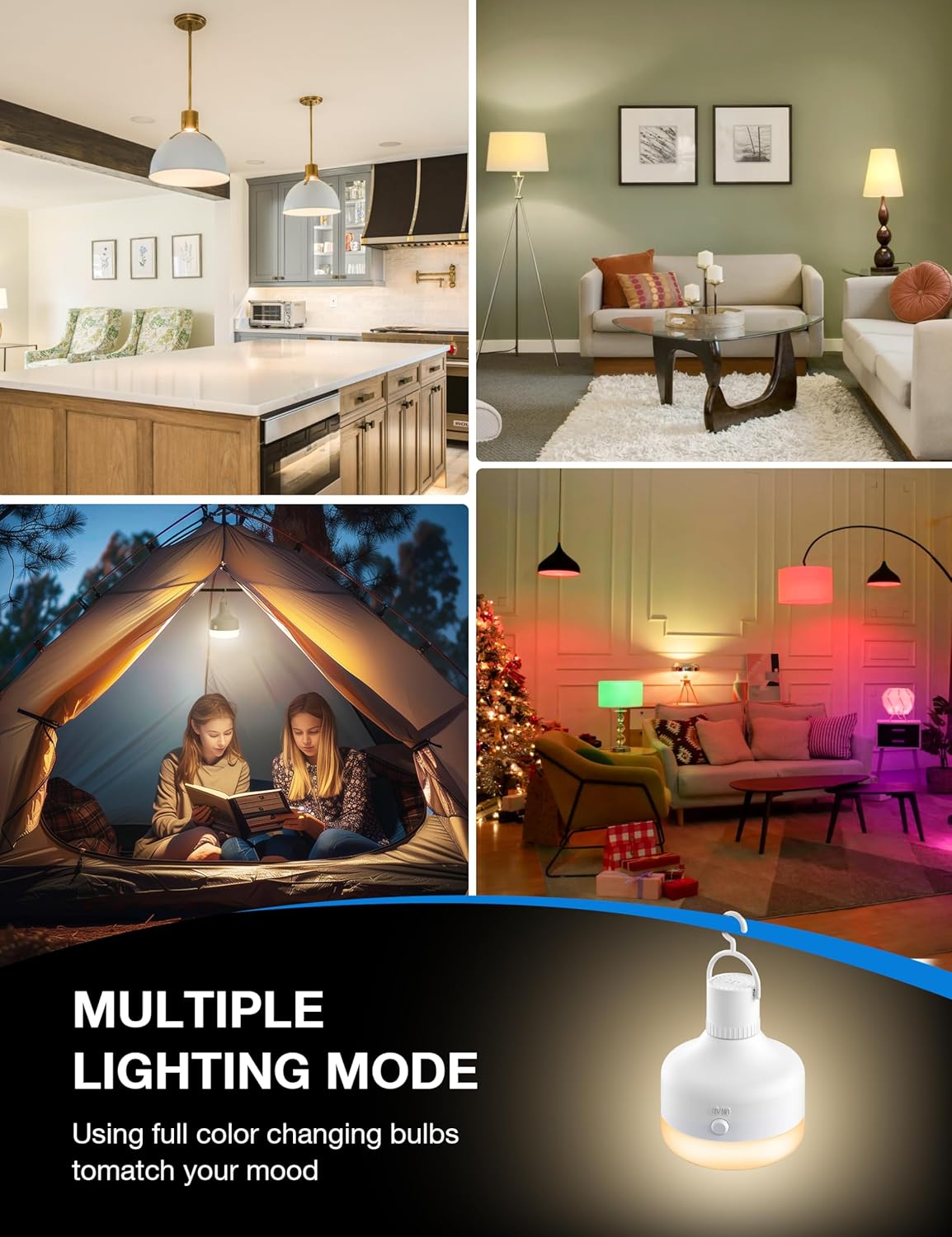 Convenient Charging and Smart Control:With a USB-C port for quick charging, battery power light bulb takes only 3 hours to fully charge, making it fast and convenient. Battery operated bulbs with remote control enable easy adjustments to color temperature and brightness without the need to get up, thereby enhancing your overall experience