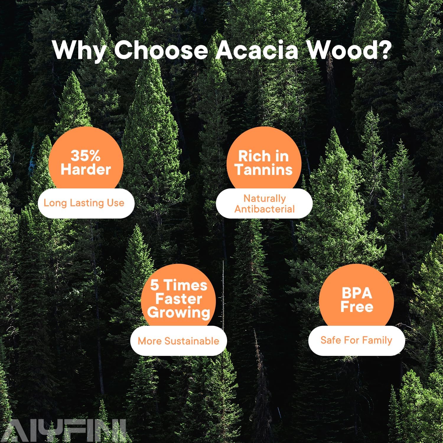 EXTRA-HARD & LONG-LASTING ACACIA WOOD: Made from solid acacia wood—35% harder than most hardwoods, naturally resistant to warping, odors, and stains. Fast-growing and sustainable, acacia matures up to 5 times faster than teak or walnut, providing both eco-conscious sourcing and long-lasting performance for everyday cooking