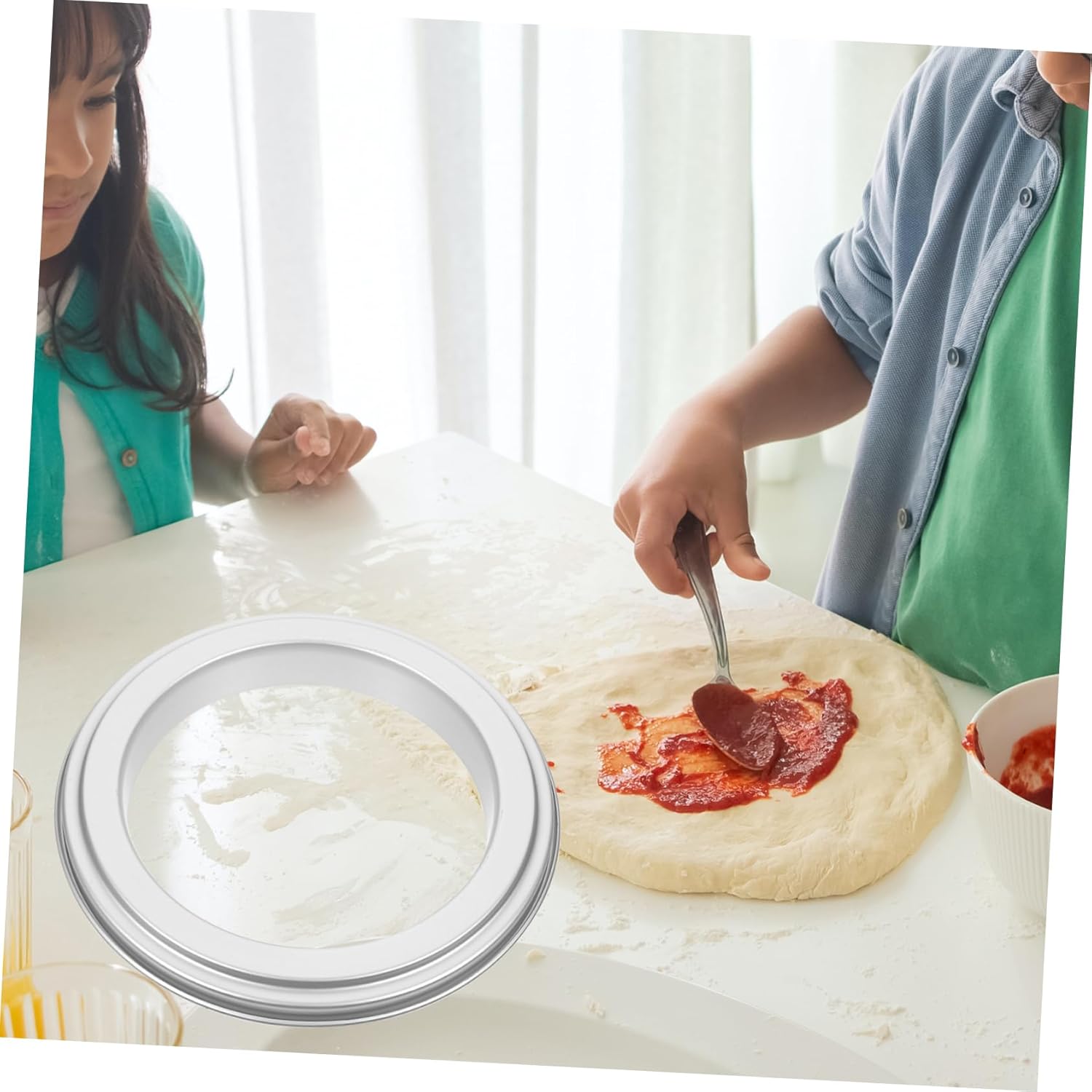 ring for pizza pan This is a pizza saucing ring, made from and sturdy material, which is and for kitchen use, it’s the tool for making pizza for your friend and family.pizza baking ring size and wide range of application, suitable for families, dessert stores, bakeries, hotels, restaurants, etc.pizza stuffing ring No more hesitation, it’s for you
