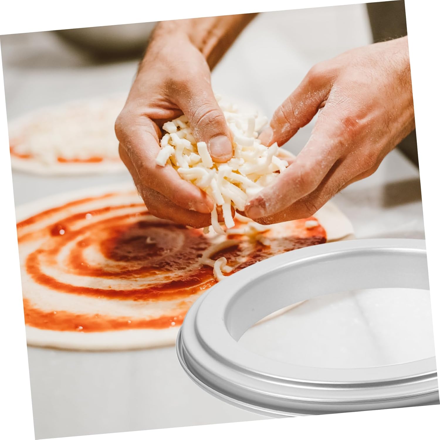 – Its design is simple and easy to operate, you only need to put it on your food. material, which can be used long term ring for pizza pan.