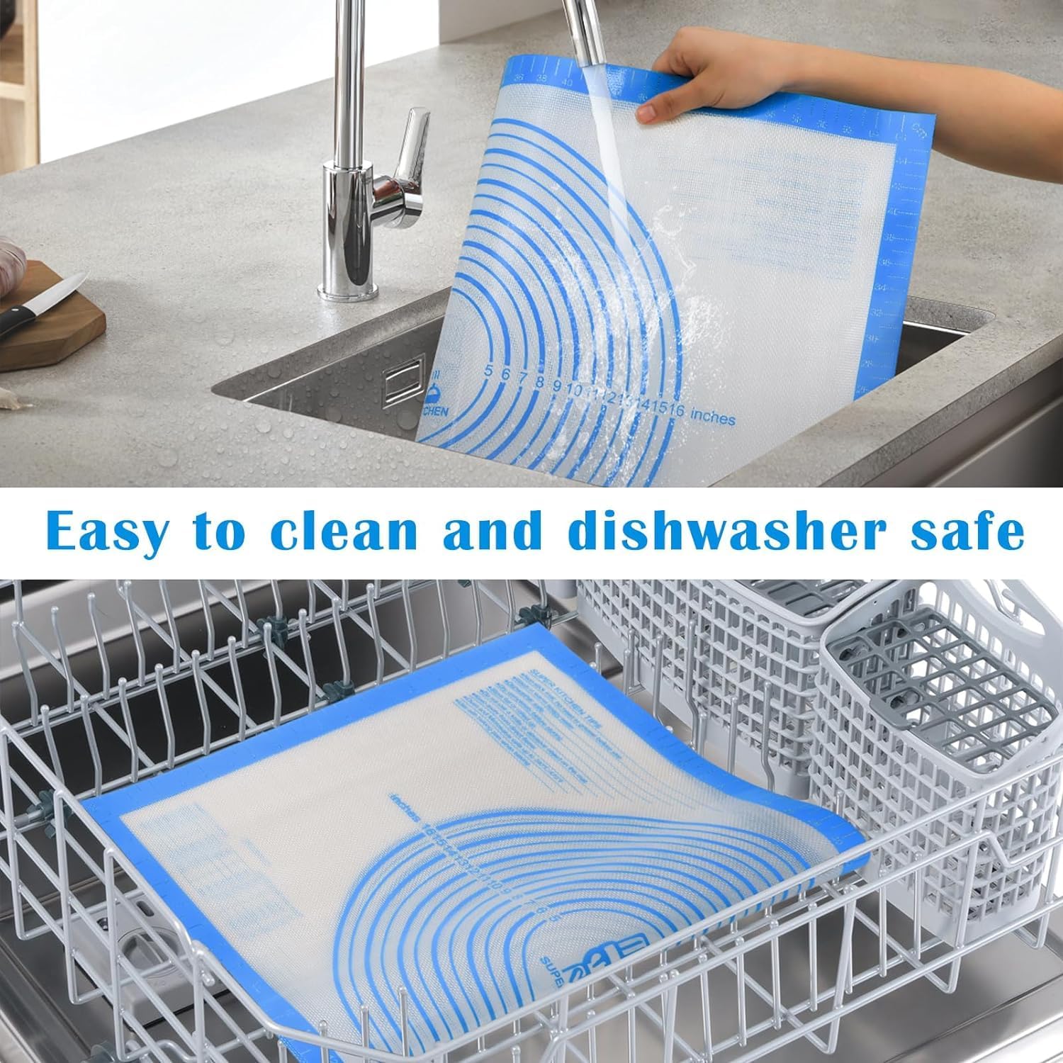 Nonslip back side and Multifunction:We upgraded the back non-slip design.It will stay good on the table when rolling dough.It is good for Pastry Mat(20×28 inches),Table Mat,Baking Mat (Temperatures from -30°F to 470°F ),Pizza board and Countertop Mat.