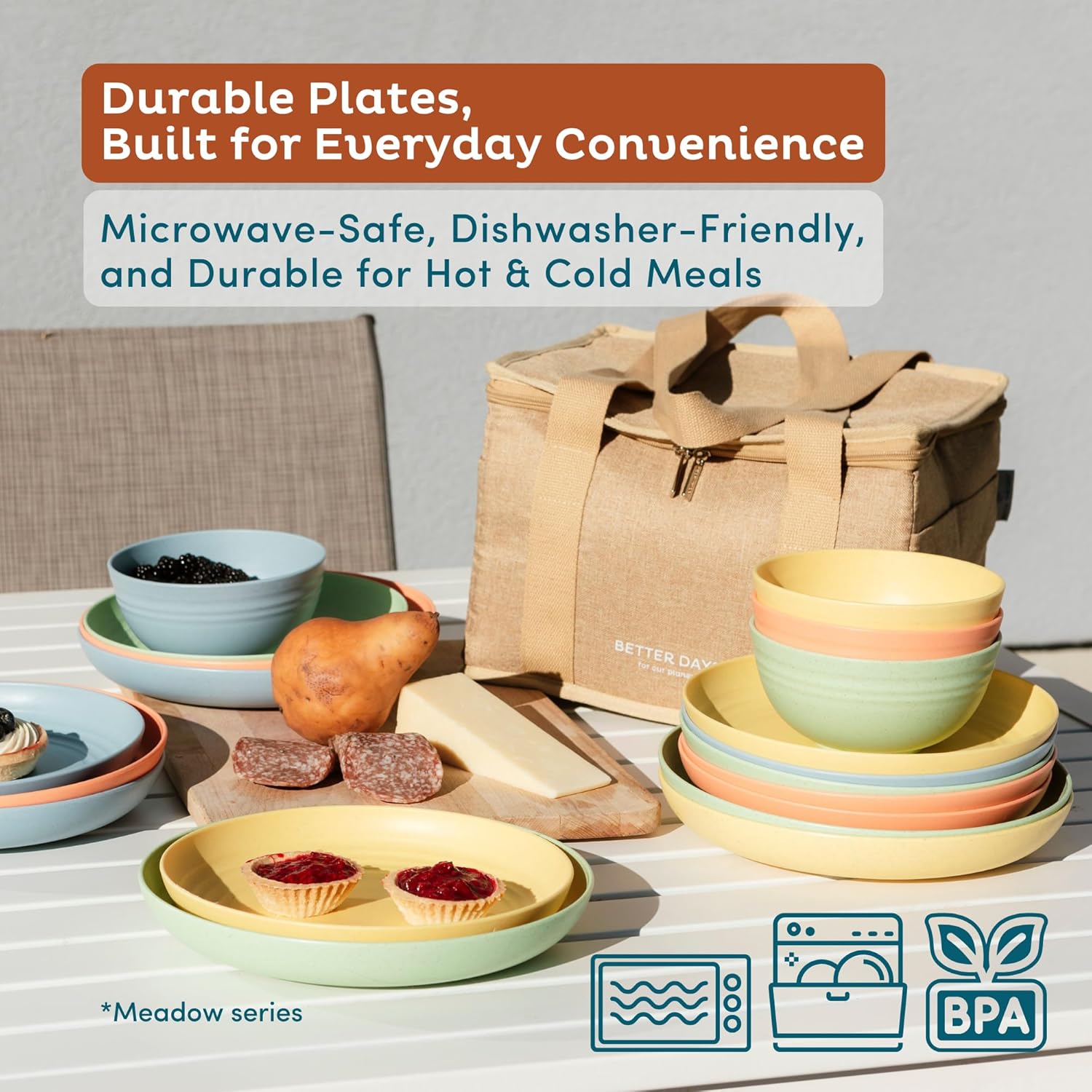 Customers find these plates sturdy, with one mentioning they hold up well in the microwave, and appreciate their cute colors and great size that can hold plenty of food. They are lightweight and dishwasher efficient, with one customer noting they don’t warp in the dishwasher. Customers find them microwave-safe and suitable for everyday use, with one mentioning they’re perfect for toddlers.
