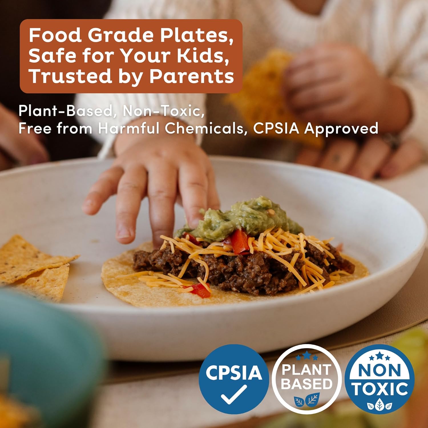 Safe for Kids & Family – Crafted from BPA-free, non-toxic wheat straw fibers and food-grade PP, our reusable plates free of harmful chemicals meet CPSIA standards and are a safer alternative to plastic plates.