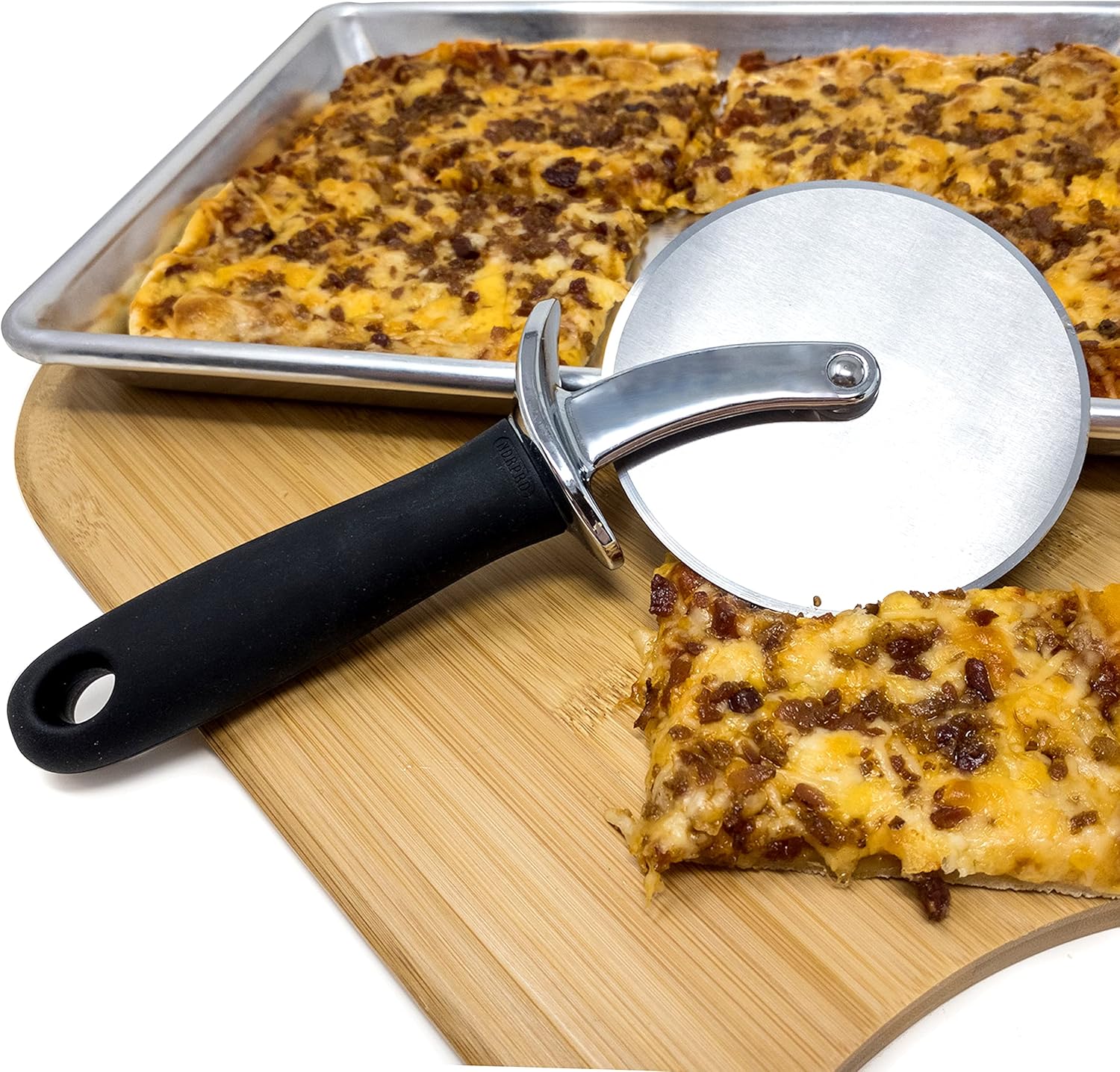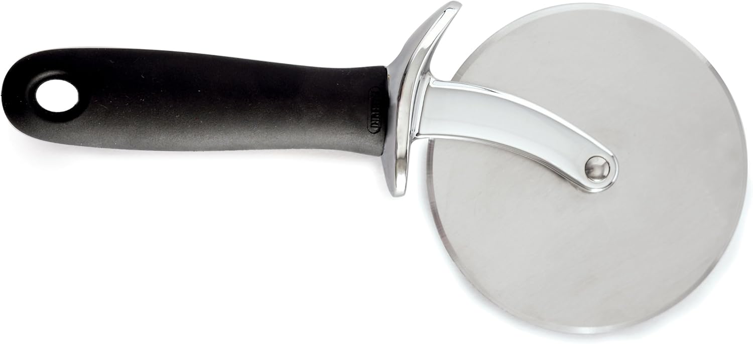 Norpro’s Large Grip-EZ pizza wheel with beveled edge cuts through pizza and pastry dough effortlessly. Large wheel with santoprene handle for non-slip grip. Perfect for large size, deep dish and fully loaded pizzas. Designed for right or left hand use. Stainless steel wheel blade with large tapered hang hole.