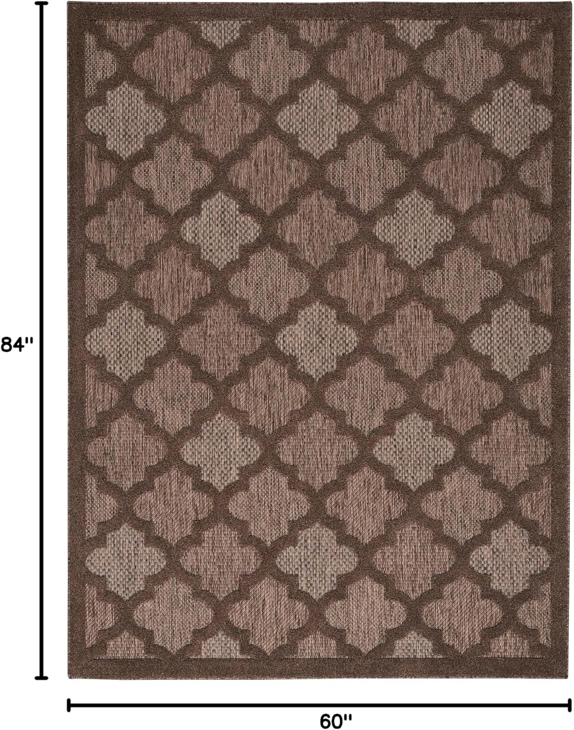 Refresh your home with the stylish designs showcased in the Nourison Easy Care Rug Collection. Featuring a flatweave ground with a softly textured high-low pattern, these indoor/outdoor rugs bring pleasing dimension to just about any space – from the living room, entryway, or kitchen to the porch, patio, deck, or balcony. Machine made from durable, low-shed, easy-clean fibers that are great in busy households and for all seasons spent outdoors. Ground your indoor or outdoor seating area in the stylish appeal of this outdoor rug from the Easy Care Collection. The space-dyed backdrop, presented in comforting brown earth tones, is enhanced by a raised Moroccan trellis pattern that adds an appealing sense of depth. Place it in your living room, dining room, entryway, or favorite outdoor space such as the patio, porch, or deck for an instant boost of inviting style. Machine-made from durable, low-shed fibers that are easy to clean, making this a great choice for all seasons spent outdoors.