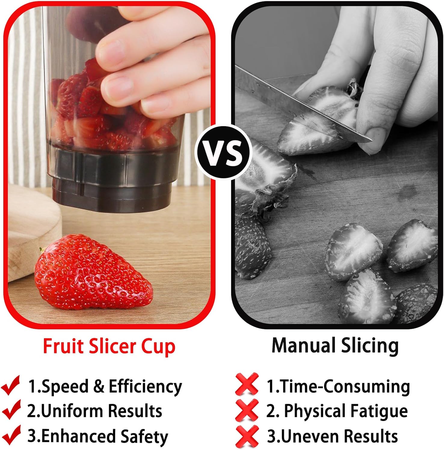 1. Premium 8-Blade Strawberry Slicer with Oversized Cutting Surface Engineered with 8 food-grade 304 stainless steel blades and a 3.54-inch wide cutting cup, this slicer consistently produces 8 uniform 6mm strawberry slices per press. The thickened ABS body withstands repeated use, while the transparent design allows visual monitoring during slicing of bananas, cucumbers, or boiled eggs.