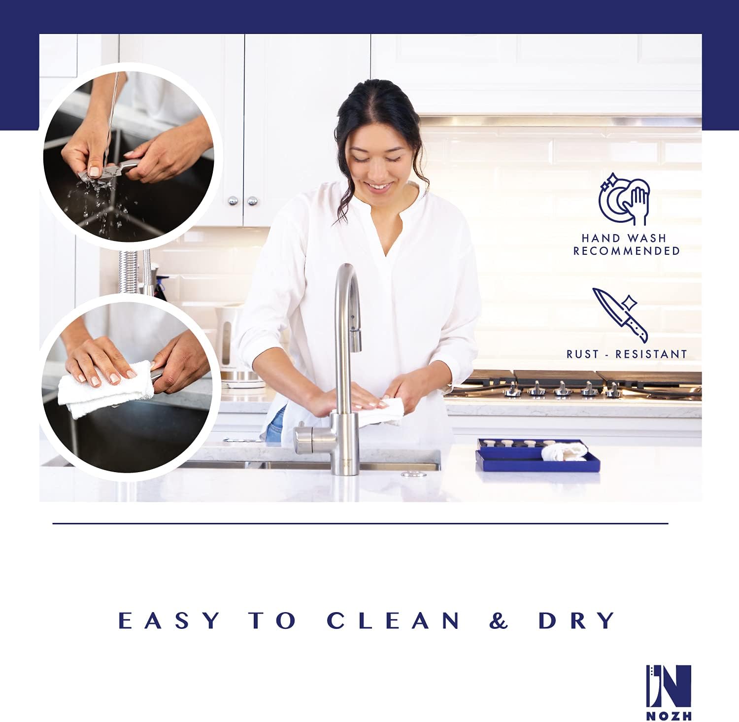 Nozh, Awakens your inner chef! 5-piece Cheese Knife set made with premium quality stainless steel. A finely curated cheese knife set is a must for your kitchen. This is a light weighted cheese knife set that is designed with your comfort in mind. Nozh knife set is easy to handle and will give you an effortless cutting experience. Do you like to Host Parties? We all know hosting parties can be stressful. It takes a lot to get everything right so your guests can have a good time. This Nozh Cheese Knife set takes a bit of stress away and allows you to host parties and get-togethers more confidently while giving your guests ease to cut, slice and shred all kinds of cheese. Gift for every occasion: Elegantly designed box along with a premium quality cheese knife set makes it a well-thought gift for all occasions. Features: Sharp, steady and easy to handle Made with premium stainless steel quality Light Weight What’s Included in the Box? 1 Pronged Knife 1 Chisel Knife 1 Thin Knife 1 Heart Knife 1 Serving Knife Cheese Knife Guide Cheese Knife Guide: Thin Knife – An ideal knife to cut semi-firm cheeses like Jack or Cheddar. As well as soft cheeses like Brie. Heart Knife – The sharp tip is great for cutting hard cheeses like Parmesan into small pieces. Pronged Knife – A versatile knife with a fork tip that can be used to serve cheese. This is great for slicing soft cheeses like Brie as well as firm cheeses. Chisel Knife – A great knife to work with crumbly soft cheeses like Gorgonzola or Blue Cheese. Its wide flat surface is useful to spread those cut or shaved pie