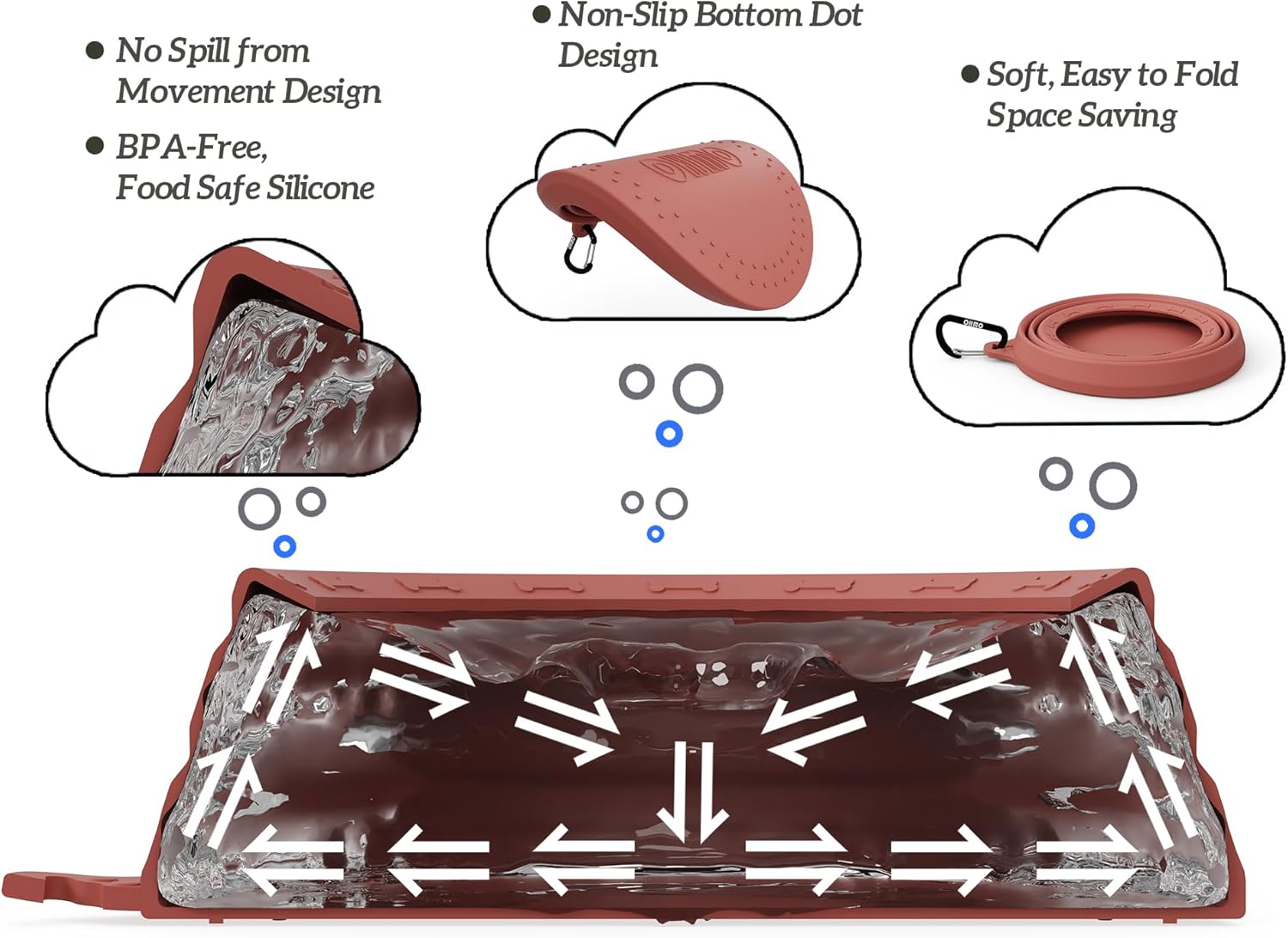 ULTRA STABILITY: Our portable travel bowl features a tapered shape that offers an exceptionally low center of gravity, ensuring unparalleled stability in most situations. Say goodbye to tipping over when you take your beloved pet on the go.