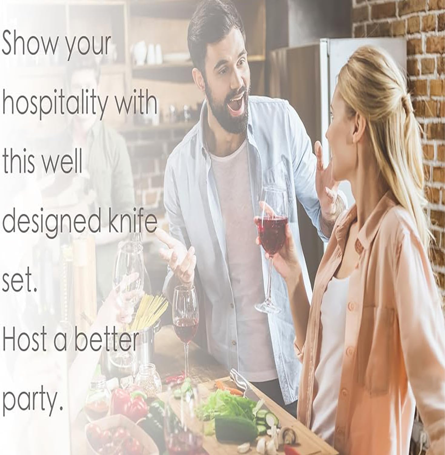 High Quality Materials: The handles and mgnetic stand are made of acacia mangium, which is very sturdy, duarable and comfort to hold. The blades are made of sharp stainless steel, great for flawless cutting any kind of foods at the table, like cheese, olives, roasted vegetables, dips, spreads and so on
