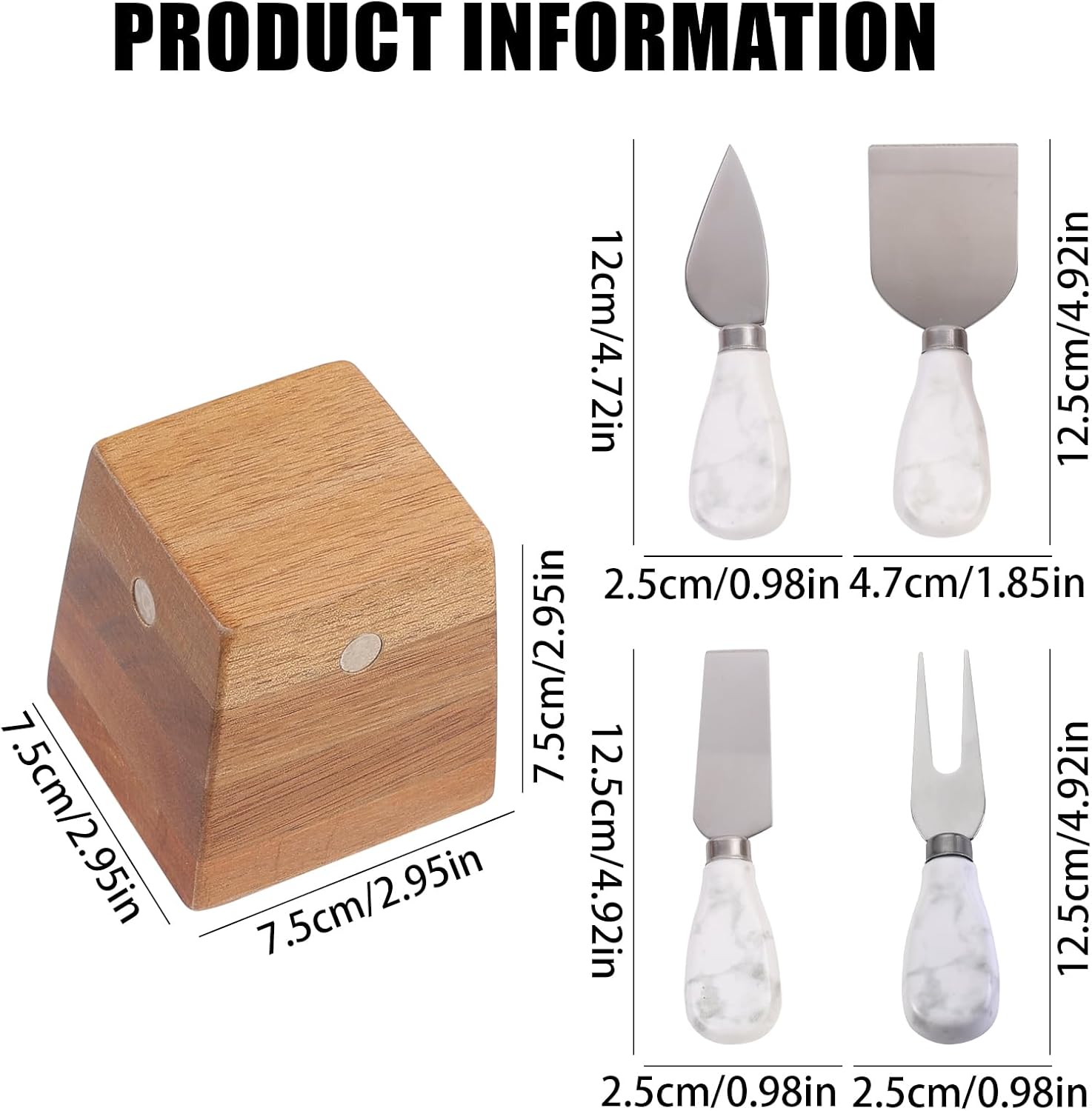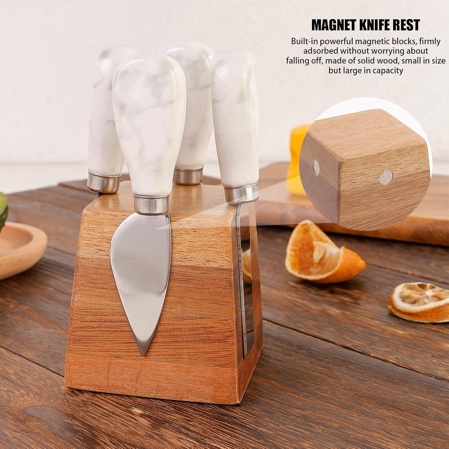 Premium Materials: Cheese knives’ handles and magnetic stand are made of sturdy acacia mangium, offering comfort and durability. The sharp stainless steel blades are ideal for effortlessly cutting cheese, olives, roasted vegetables, dips, and spreads