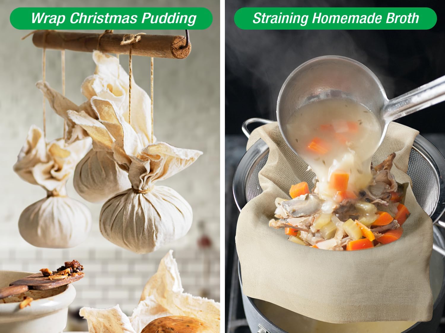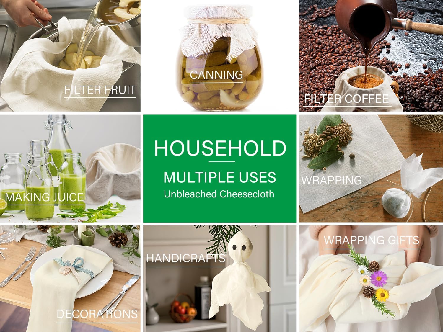 Chemical Free – Stuff poultry, wrap spices, craft customized projects, even use as cheesecloth table runner, all without chemicals. Unbleached Pure Cotton – Strain almond milk, cold brew coffee, juice, and any other foods without worrying.