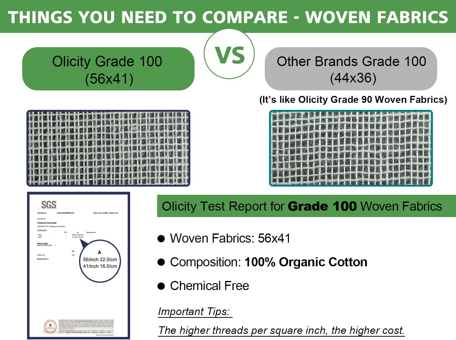 SGS Tested Grade 100 – Our woven fabrics is 56×41. Didn’t reduce threads. No Easy to Tear – The higher threads per square inch, the higher cost. You got what you pay.