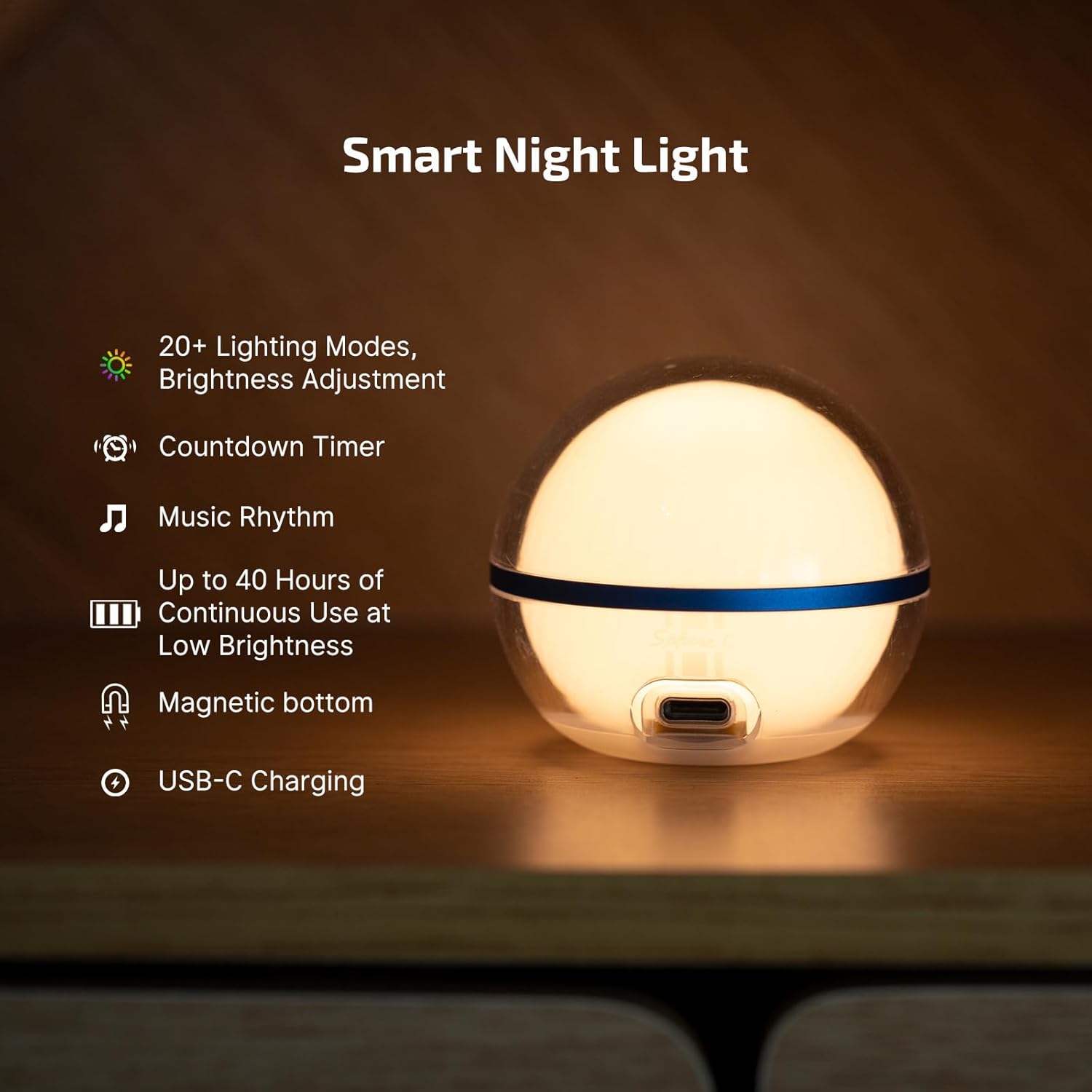 Secure & Long-Lasting: Sphere C Night Light is equipped with a 700mAh capacity battery that delivers up to 3 hours in bright mode and 40 hours in soft white light mode. The night lamp will automatically enter sleep mode if there is no operation for 30 minutes to avoid power consumption, making it the perfect companion for peaceful nights.