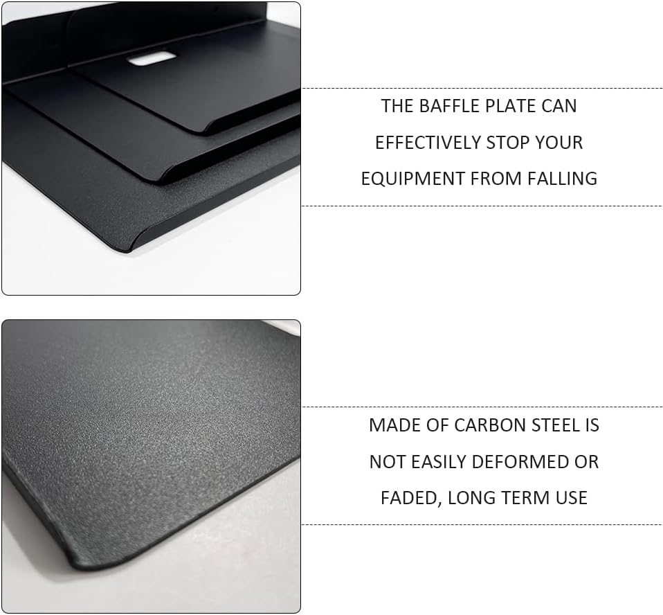 Thickened carbon steel creates strong load-bearing capacity to stand up enough weight without deformation, special coating to withstand scratches without fading off. Front slightly raised baffle helps effectively stops your devices or items from falling down.