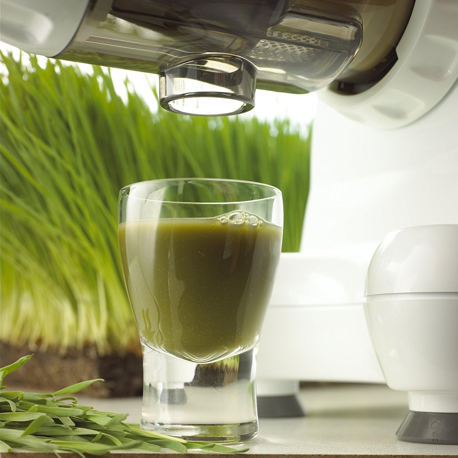 Customers find the juicer excellent at extracting juice from leafy greens and fruits, with super easy cleanup that takes seconds to rinse. Moreover, the machine is very easy to put together, works well, and customers consider it worth the money. Additionally, they appreciate its build quality, with one customer noting it can be used continuously for 30 minutes, and the pulp comes out fairly dry. However, opinions on speed are mixed, with some finding it super fast while others describe it as very slow.