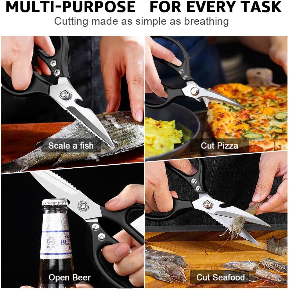 ✄Precision Cutting with Serrated Blade- Experience precise cutting performance with our kitchen scissors. The one side of the blade features serrations, enabling enhanced grip and control for effortless cutting. With a length of 8.8 inches and a blade thickness of 4mm, these shears provide the perfect balance of strength and precision.