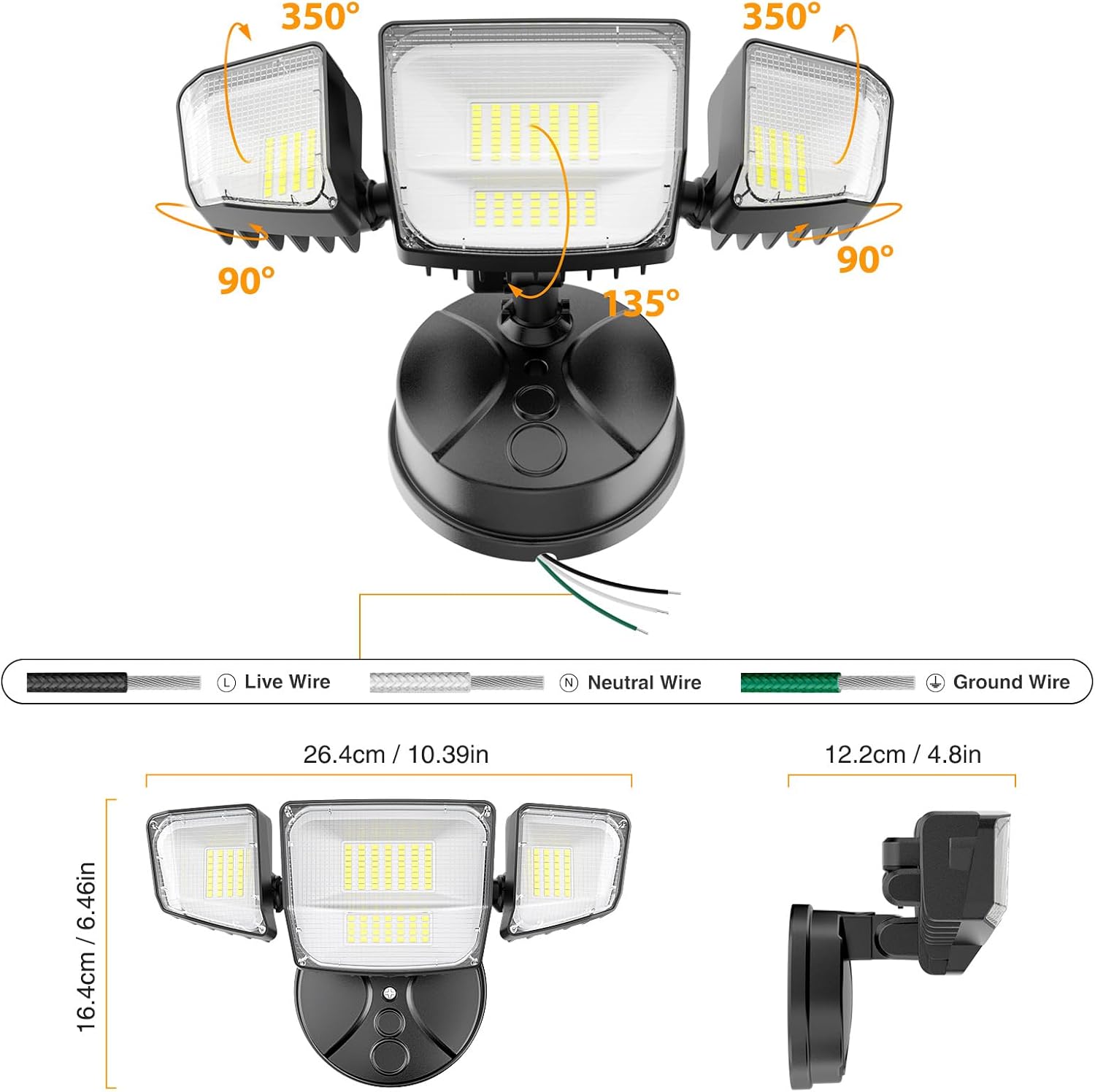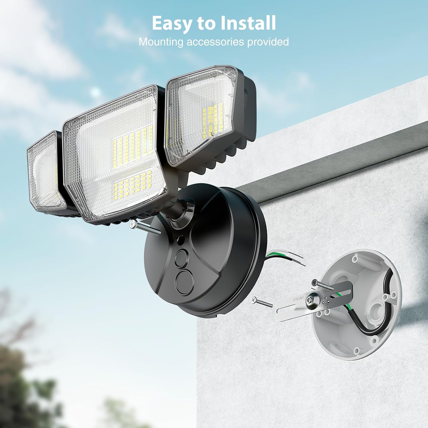 Upgraded 4 Light Head & Energy Saving: 4 Light heads and a unique quad-beam design provide even and widespread illumination, resulting in a wider illumination area and a beam angle up to 300°. Our onforu smart exterior flood light is with low energy consumption and great heat dissipation, it can save more than 85% electricity bill, suitable for mounting outdoors, garage, yard, backyard, walkway, porch, etc