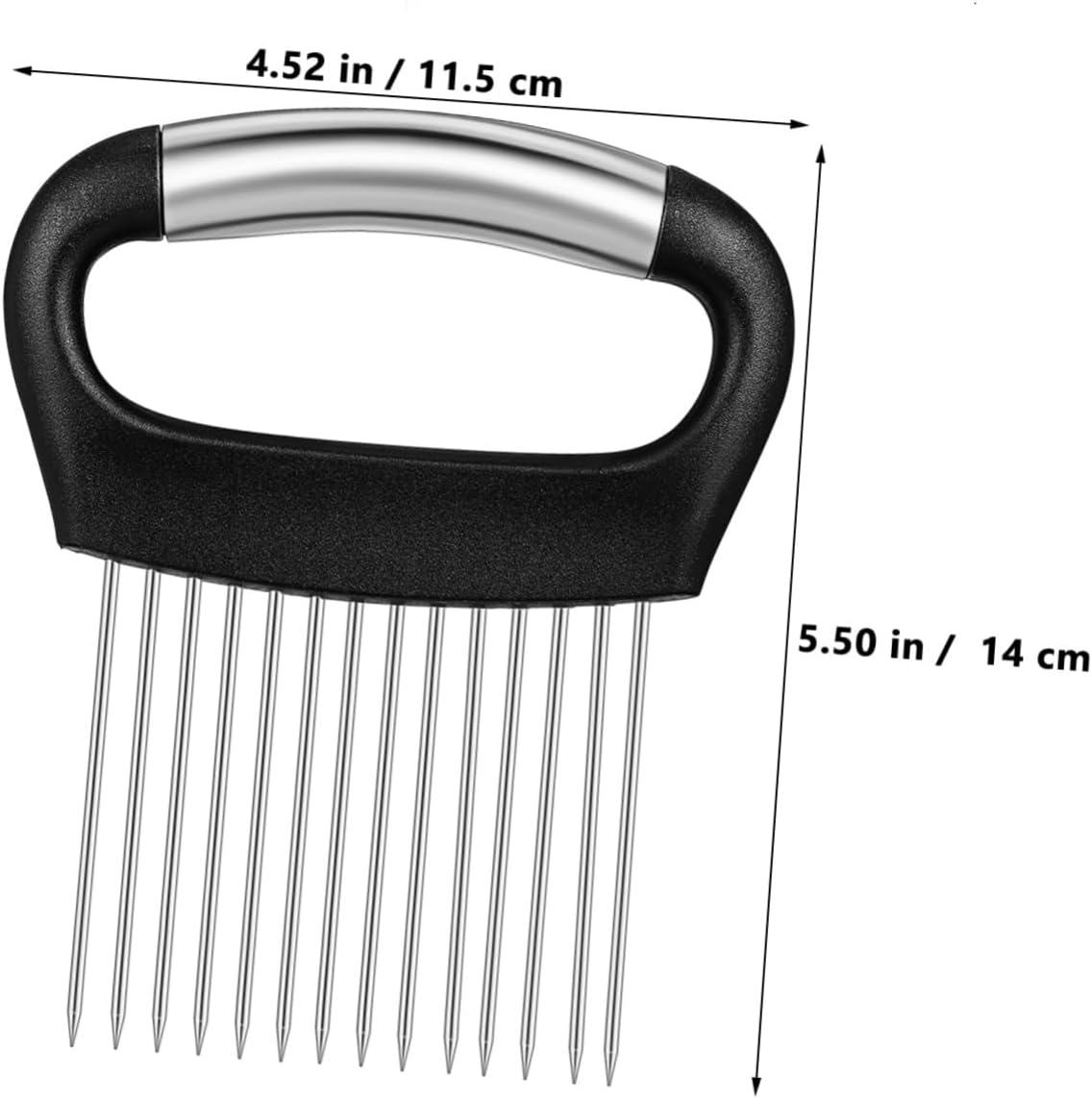 -Uniform slices: The evenly spaced prongs of the onion holder guide you to create uniform slices with ease, presenting a professional presentation onion tool