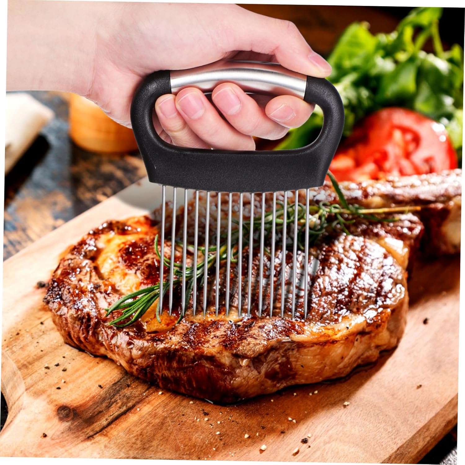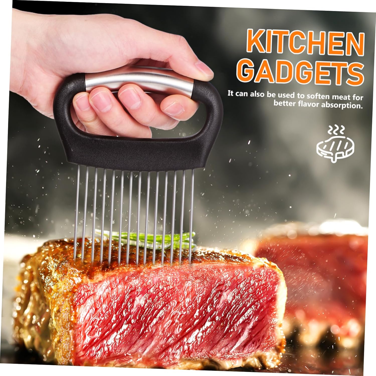 -Dual functionality: This kitchen tool not only holds onions securely for slicing but also doubles as a meat tenderizer for better flavor absorption meat tenderizer guide