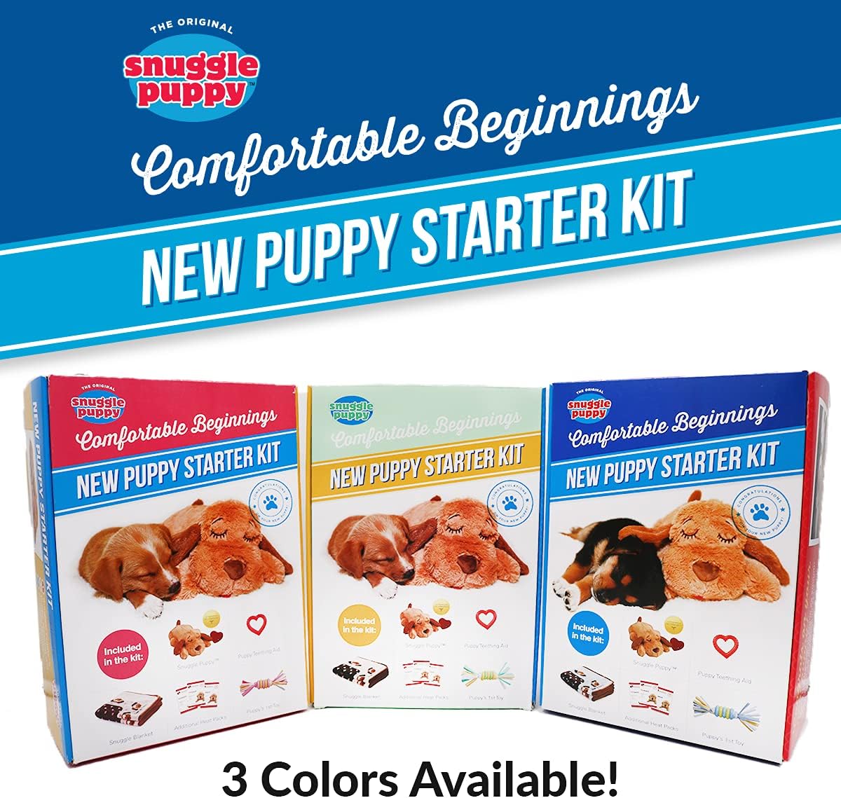 ORIGINAL SNUGGLE PUPPY ESSENTIALS STARTER KIT: The ultimate gift for new dog owners – contains an Original Snuggle Puppy in Biscuit, 3 heat packs, a Snuggle Puppy blanket, puppy’s 1st toy and our puppy teething toy.