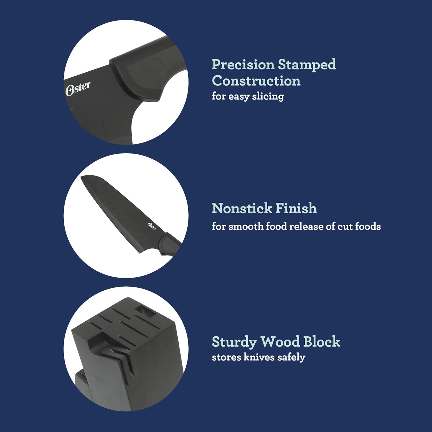 GET CREATIVE IN THE KITCHEN: From the basic techniques to the more elaborate recipes, Oster knives create a space for home cooks to hone their culinary craft one recipe at a time. Each knife features a stamped construction to provide ease of use and manueverability.