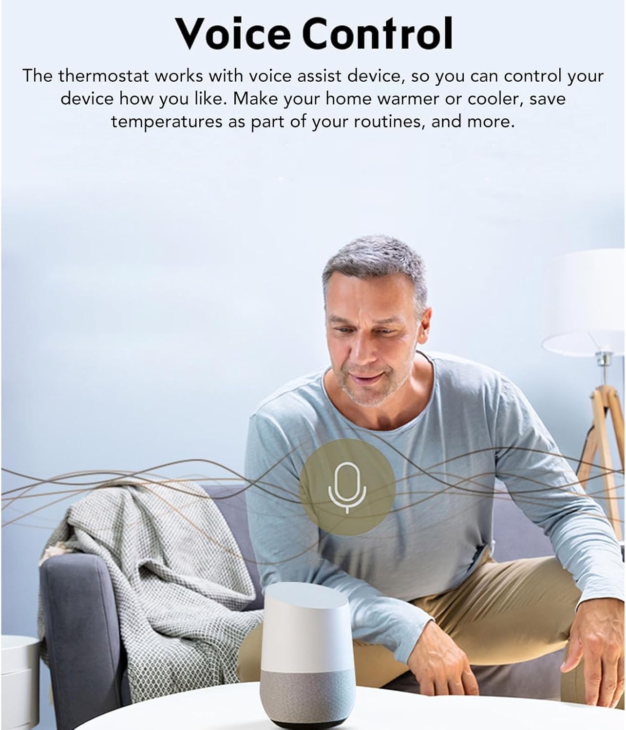 Voice Control: This thermostat supports voice control, combined with a voice assist, allowing you to control the device as you please; Provide maximum comfort by sensing whether your home needs heating or cooling