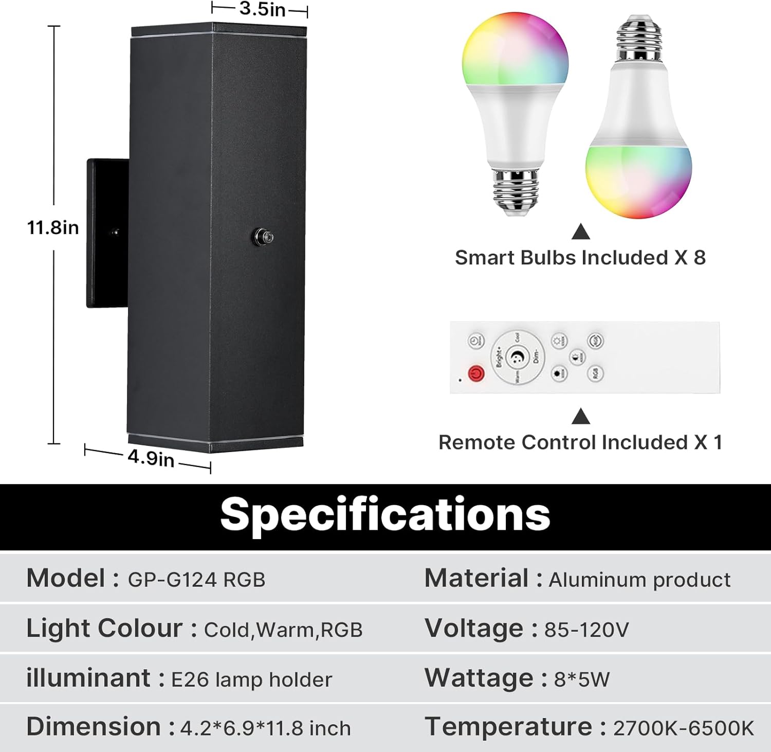 【Versatile Indoor/Outdoor Use】Compact 3.5×4.9×11.8 inch 9W LED emits 800lm bright yet energy-efficient light, perfect for porches, pools, gardens, or interiors like hallways and bedrooms. Robust 30m outdoor/40m indoor control range ensures seamless operation. IP-rated protection guarantees reliability in all seasons