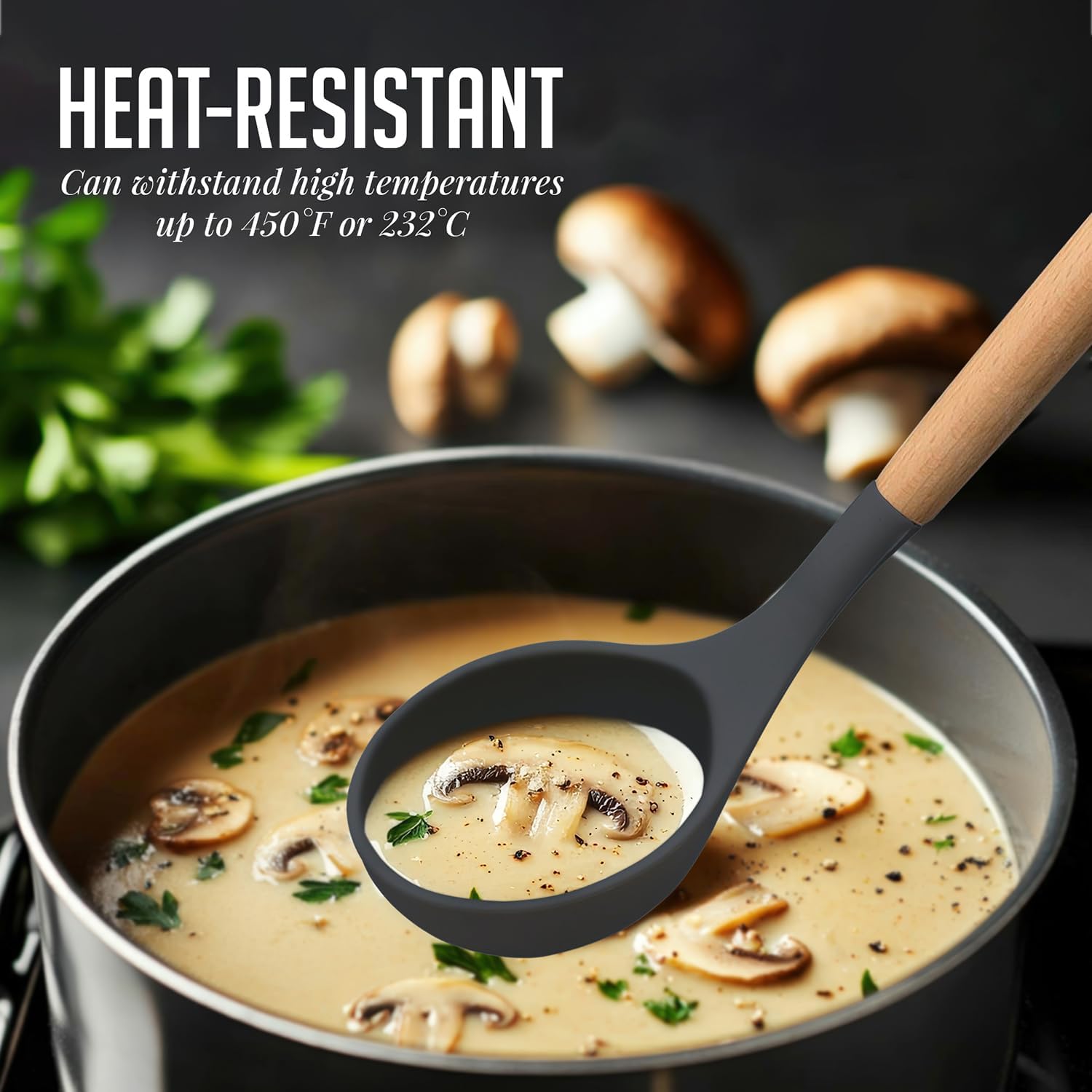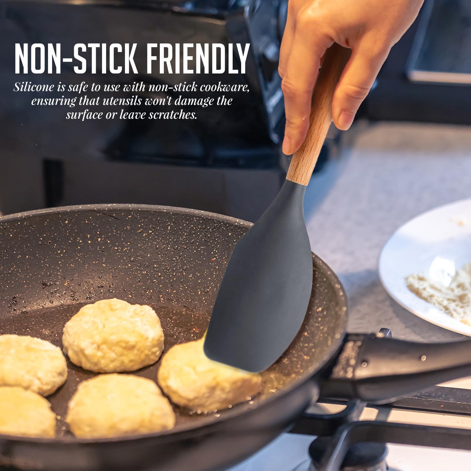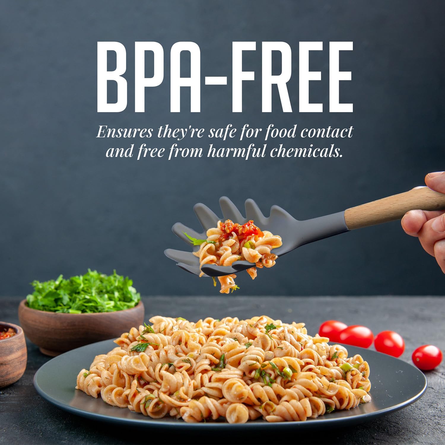 BPA-FREE & BUILT TO LAST – Made of premium, food-grade silicone that is completely BPA-free, ensuring safety for all types of food. The silicone material helps protect your cookware from scratches, while the wooden handles provide a sturdy and comfortable grip, making cooking a breeze. Cook with confidence, knowing these utensils are dependable and long-lasting.