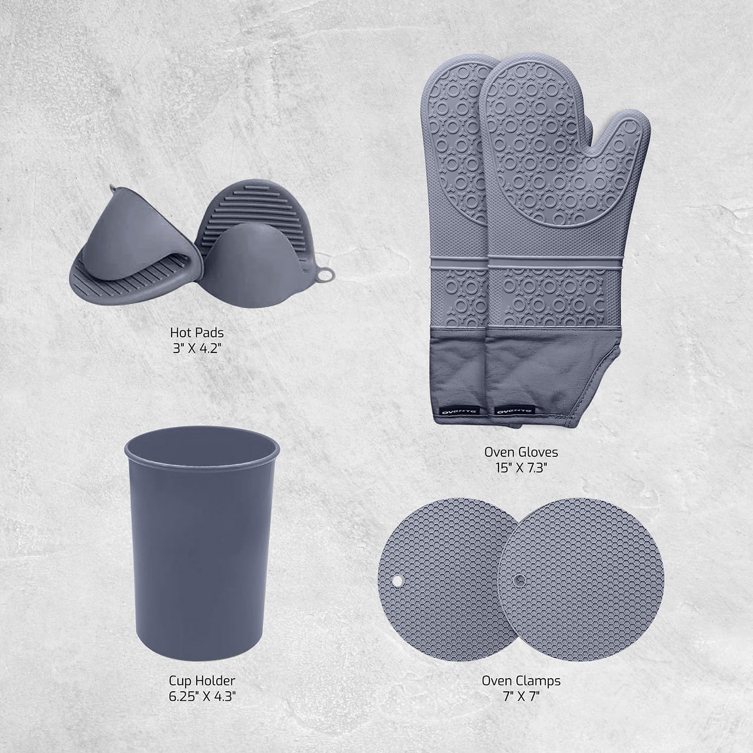 COMPLETE KITCHEN UTENSIL SET – Upgrade your kitchen with this all-inclusive utensil set designed to enhance your cooking experience with both style and functionality. This set includes: tongs, spatula, slotted spoon, solid spoon, slotted turner, soup ladle, pasta server, round spatula, solid turner and whisk. Each piece is crafted to meet all your essential cooking needs, offering unbeatable value. Additionally, the set is paired with oven gloves, oven clamps and hot pads for added safety while cooking or baking.