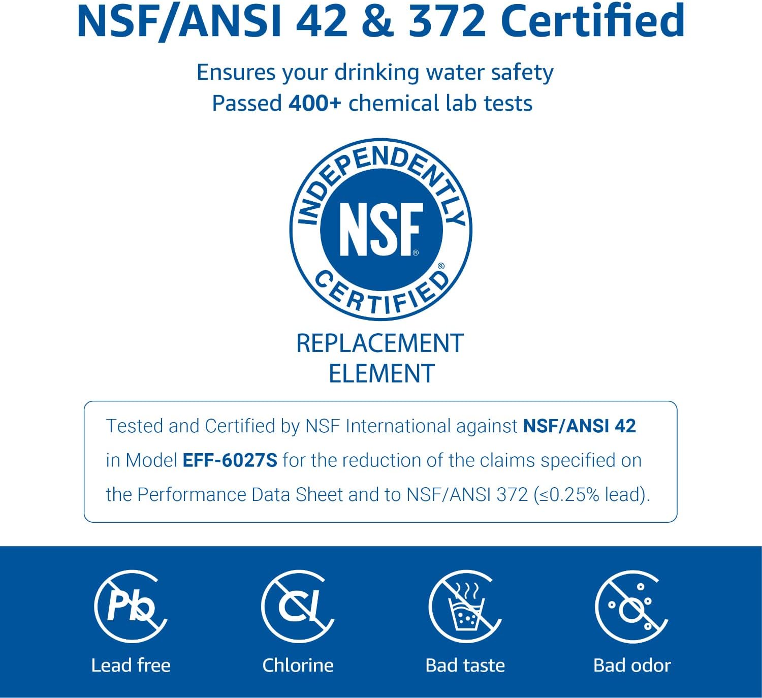 [Fresh-tasting water] The natural coconut shell carbon block adopted by our water filter provides a better water taste by absorbing more impurities than cheaper mixed carbon block filters.