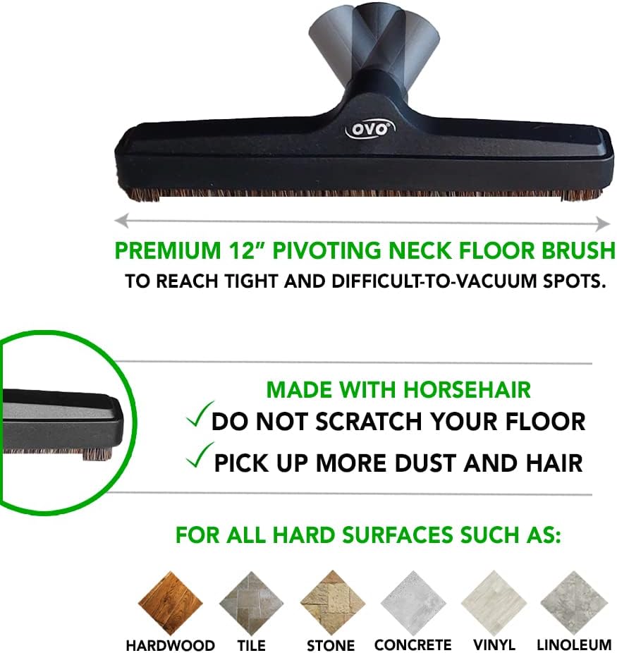 12″ Floor brush made with Horsehair. Will not scratch your floor. Ideal for hard surfaces
